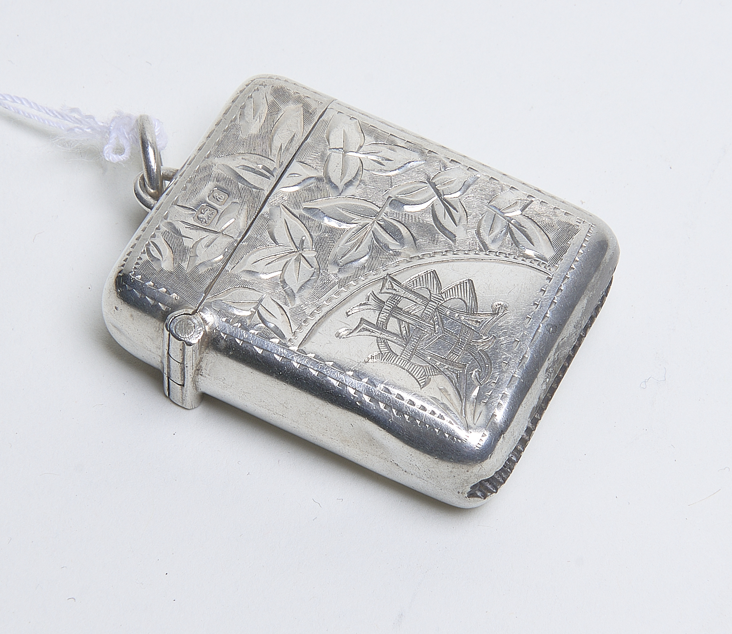 AN ENGRAVED STERLING SILVER VESTA OF SQUARE FORM SIDES (A/F) H.4CM, LEONARD JOEL LOCAL DELIVERY SIZE: SMALL