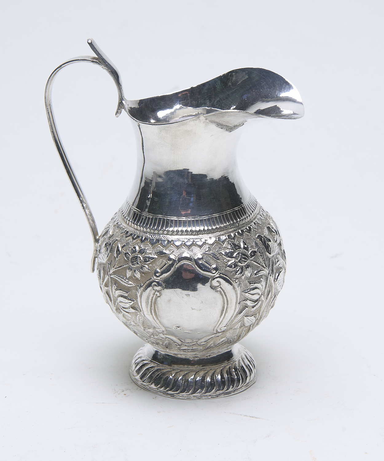 A FLORAL EMBOSSED JUG H.16CM, LEONARD JOEL LOCAL DELIVERY SIZE: SMALL