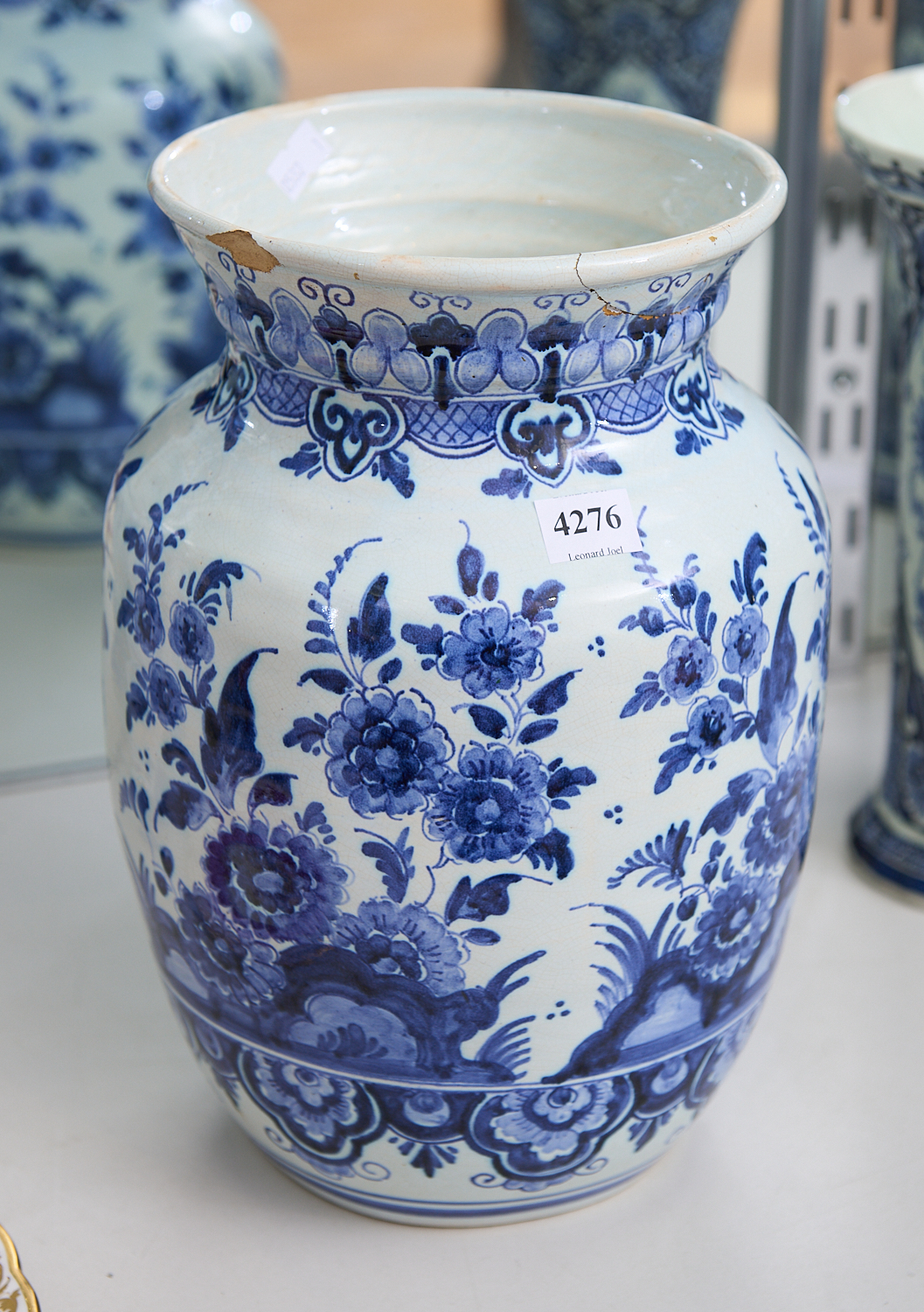 A DUTCH DELFT PORCELAIN VASE WITH FLORAL DECORATION, H.29CM (A/F), LEONARD JOEL LOCAL DELIVERY SIZE: MEDIUM