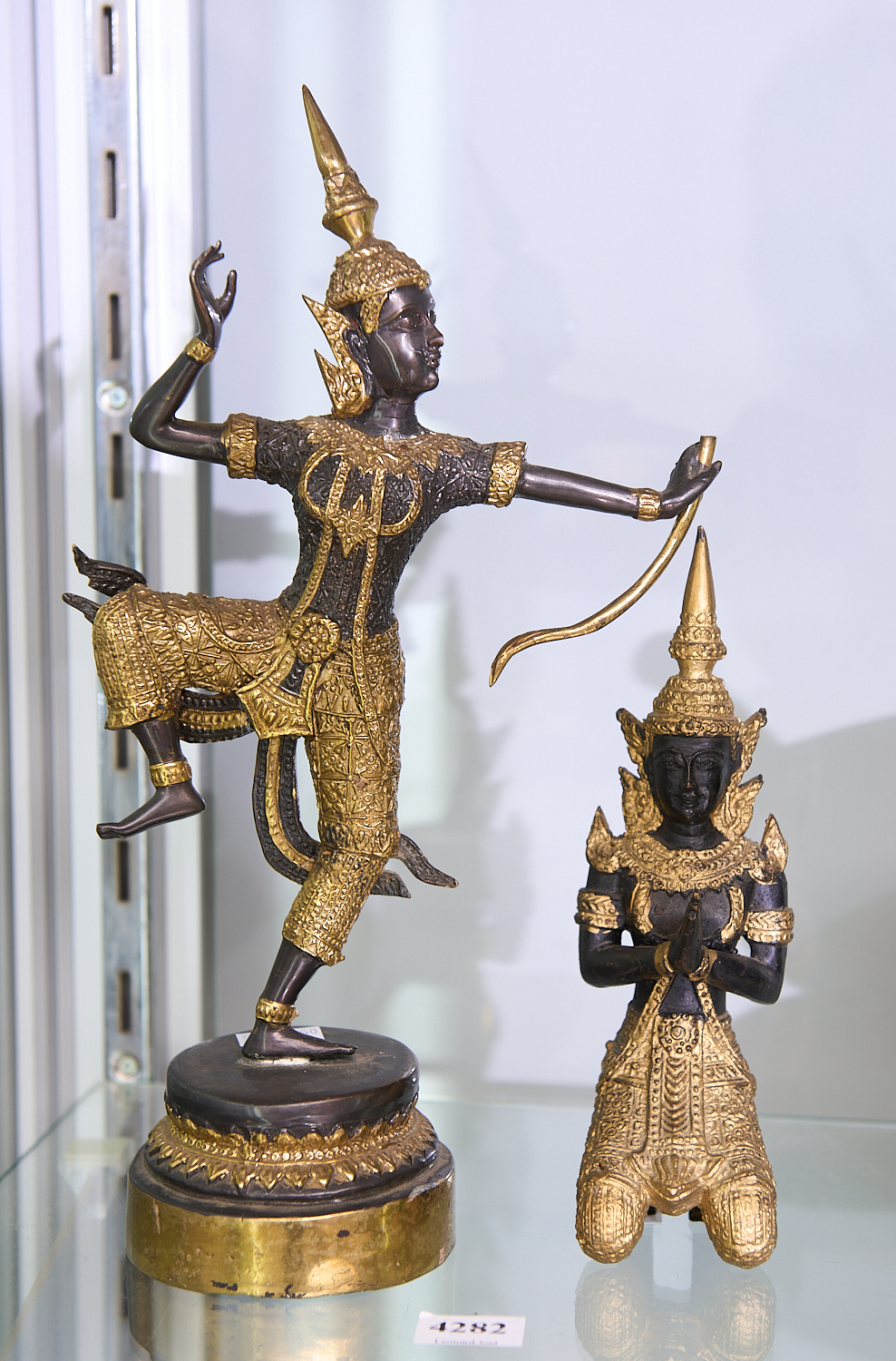 TWO VINTAGE BALINESE DEITIES H.29CM, LEONARD JOEL LOCAL DELIVERY SIZE: SMALL