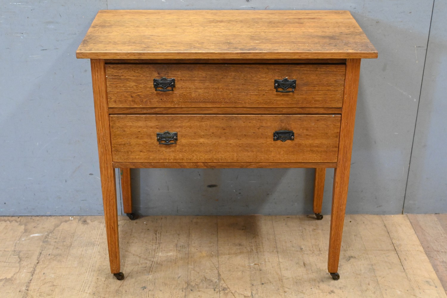 AN OAK TWO DRAWER CHEST ON CASTORS ( 82H X 84W X 45D CM) (LEONARD JOEL DELIVERY SIZE: LARGE)