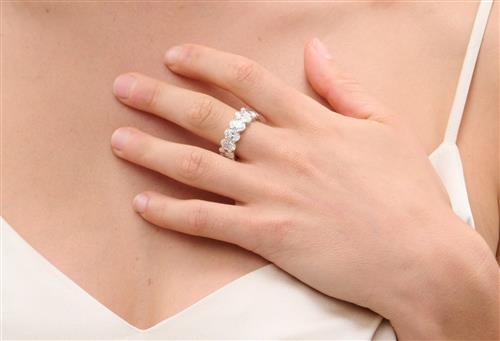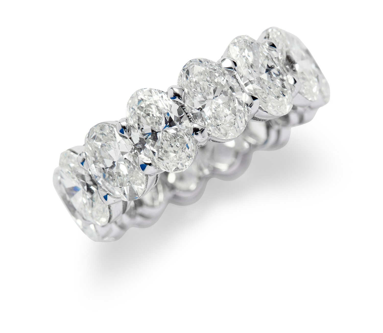 Designed as a continuous row of 14 claw-set oval brilliant-cut diamonds together weighing 9.88 carats, mounted in 18ct white gold, size M.