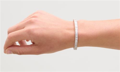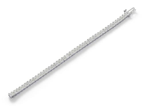 Composed of a line of 46 claw-set emerald-cut diamonds completed by a concealed box clasp, the diamonds together weighing 14.25 carats, mounted in 18ct white gold, length 158mm.