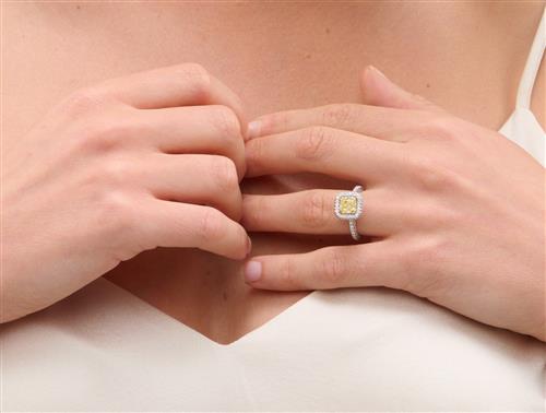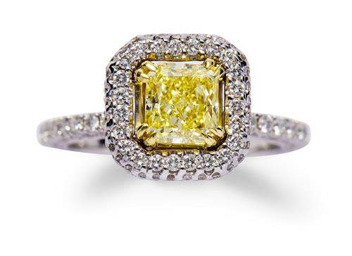 FANCY LIGHT YELLOW DIAMOND AND DIAMOND RING