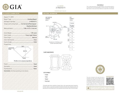 Accompanied by a GIA report numbered 2195570171, dated 11 August 2018, stating that the 1.09 carat diamond is natural, fancy light yellow colour, VVS2 clarity.