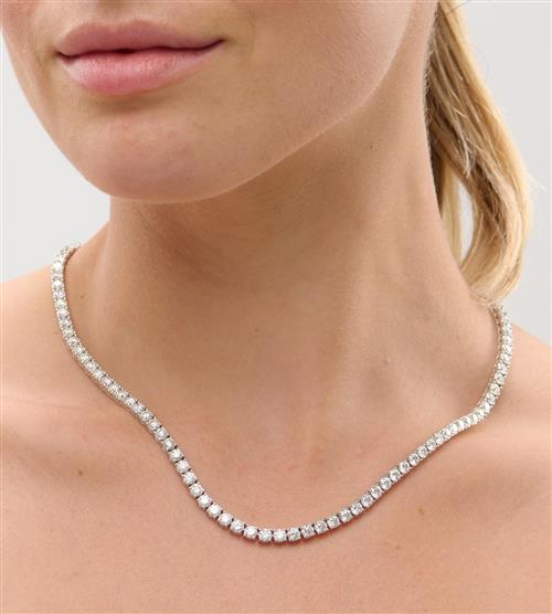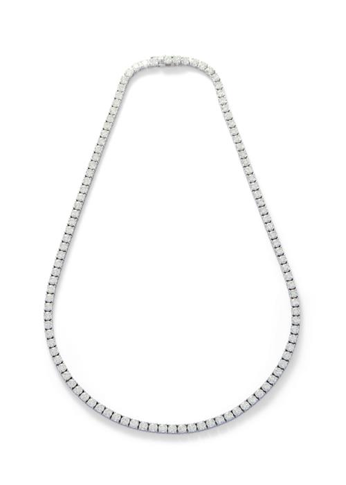 Composed of a line of 109 claw-set brilliant-cut diamonds completed by a concealed box clasp, the diamonds together weighing approximately 20.07 carats, mounted in 18ct white gold, circumference 430mm.