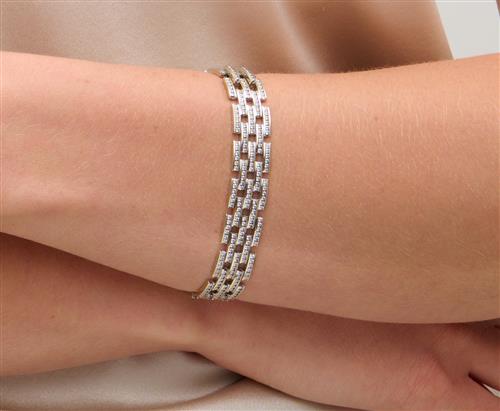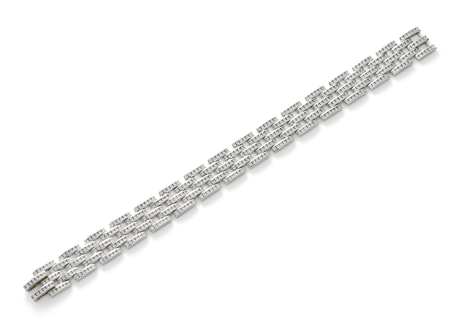 Composed of five rows of brick links channel-set with brilliant-cut diamonds, the diamonds together weighing approximately 5.00 carats, mounted in 18ct white gold, length 175mm, signed Kwiat.