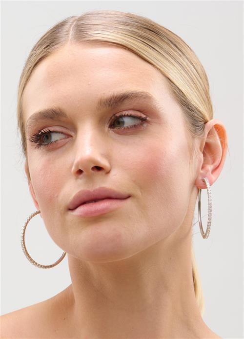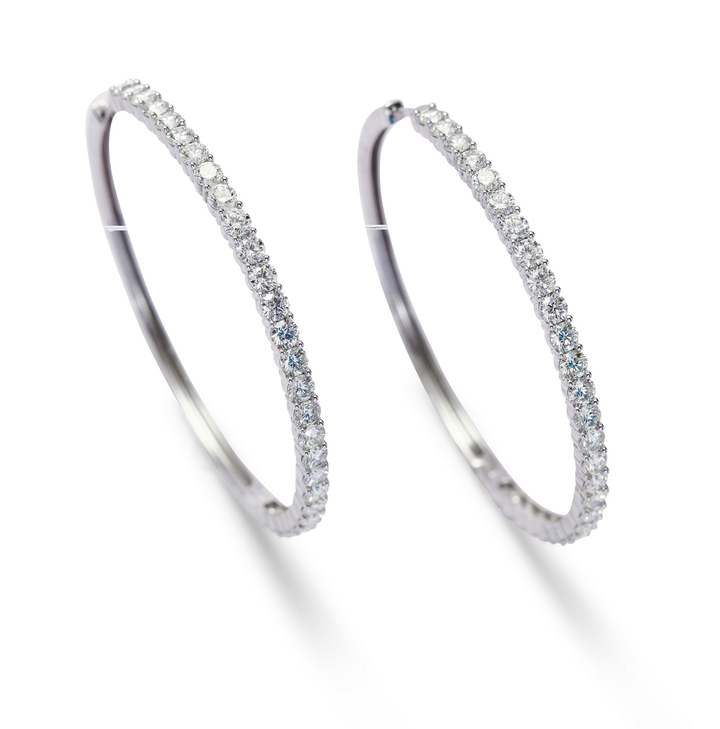 Each circular hoop claw-set to the front with a line of brilliant-cut diamonds together weighing approximately 5.00 carats, mounted in 14ct white gold, inner diameter approximately 44mm, post and clip fittings.