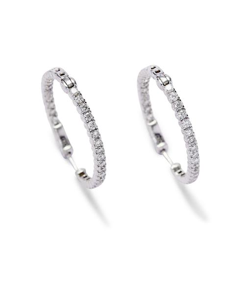 Each elliptical hoop claw-set to the front and inside back with a line of brilliant-cut diamonds together weighing approximately 1.95 carats, mounted in 14ct white gold, width 24mm, length 33mm, post and clip fittings.