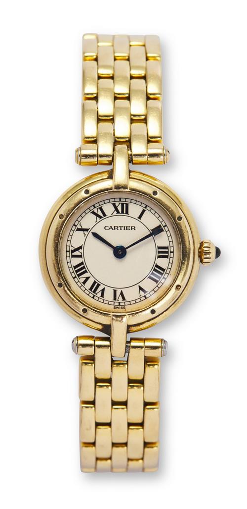 CARTIER PANTHÈRE VENDÔME, A LADY'S FINE AND RARE 18CT GOLD QUARTZ WRISTWATCH WITH CREAM DIAL AND INTEGRATED BRACELET, CIRCA 1990