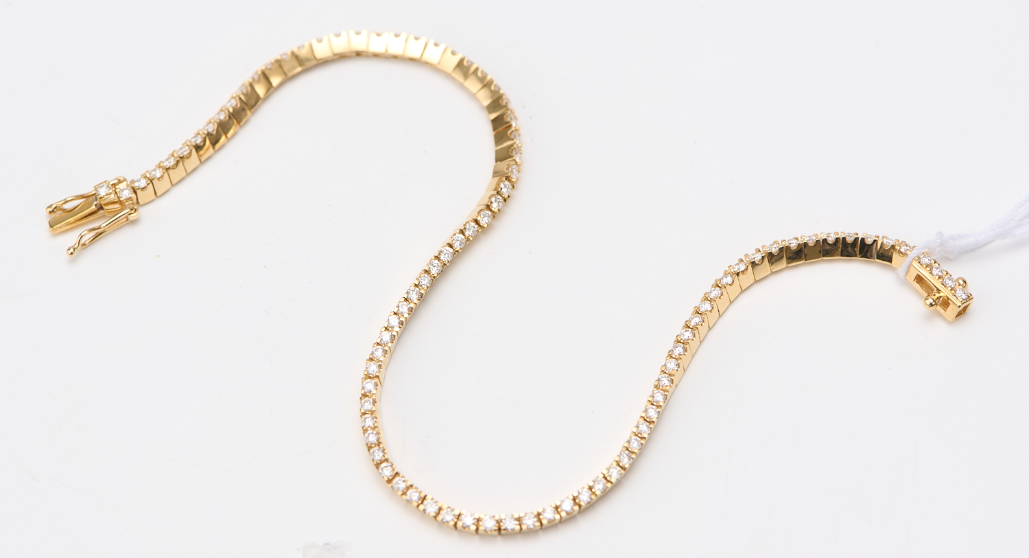 A DIAMOND LINE BRACELET IN 18CT GOLD, THE DIAMONDS TOTALLING 1.10CTS, TOTAL LENGTH 170CM, 6.33GMS