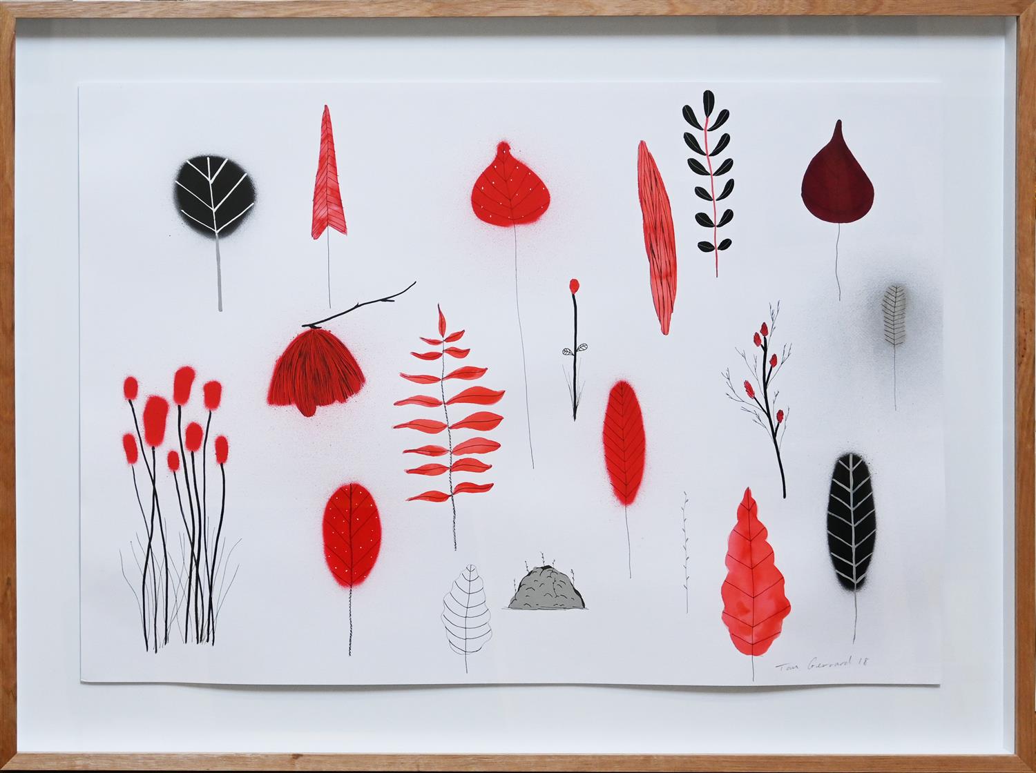 TOM GERRARD, FLORA AND FAUNA, MIXED MEDIA ON PAPER, 70 X 100CM, FRAMED
