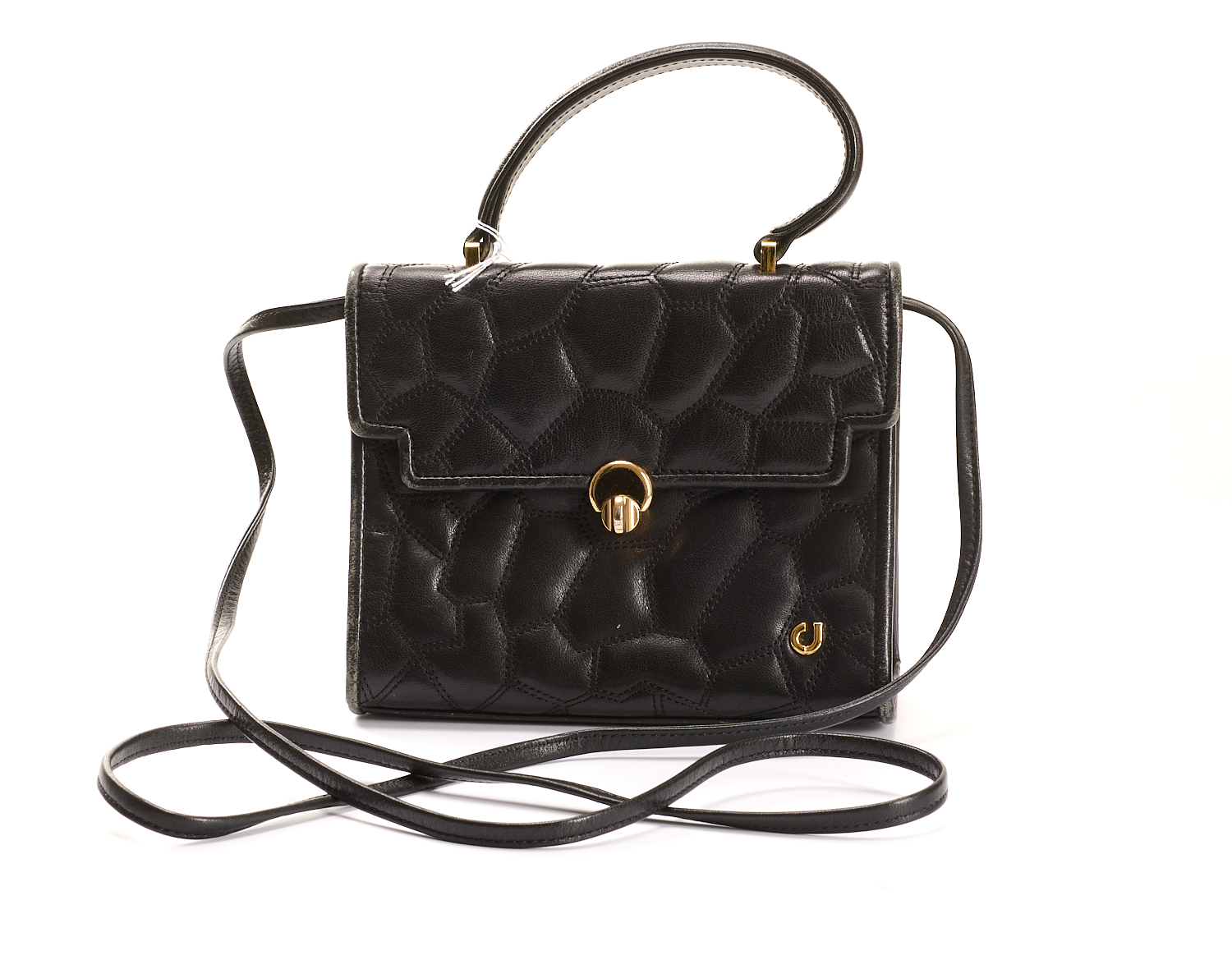 A VINTAGE EVENING BAG BY CHARLES JOURDAN - Styled in black matelassé leather, with gold tone hardware, leather top handle, leather interior and optional crossbody strap 14 x 17 x 7cm.