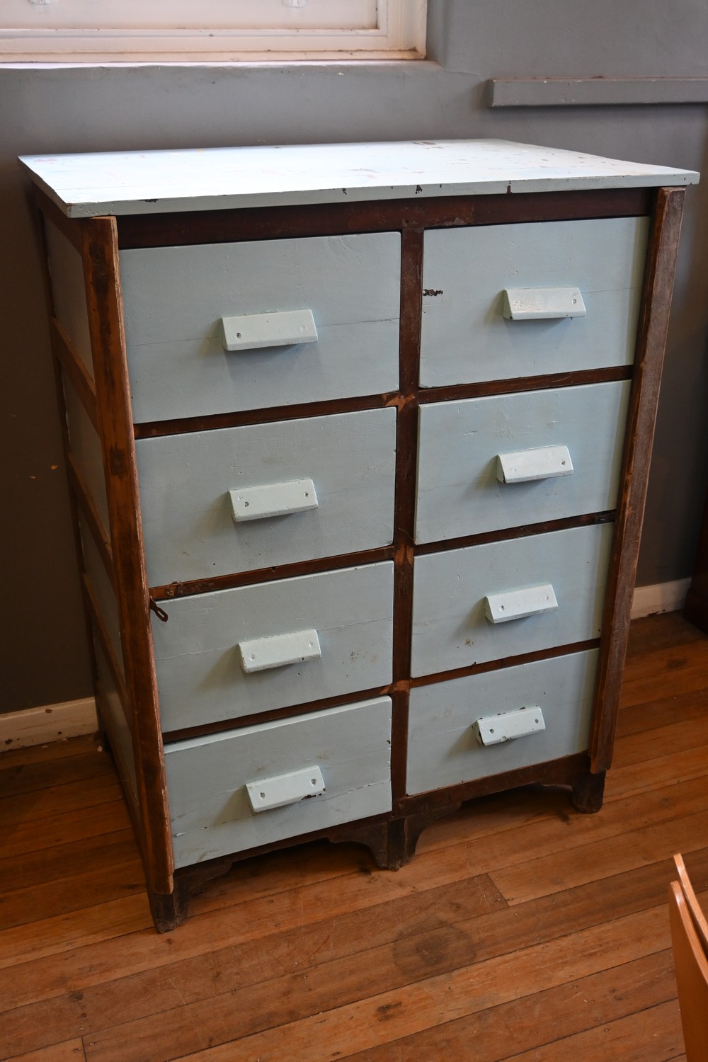 A SUBSTANTIAL SET OF EIGHT TIMBER FILING DRAWERS (A/F) (145H X 112W X 76D CM) (PLEASE NOTE THIS HEAVY ITEM MUST BE REMOVED BY CARRIERS AT THE CUSTOMER'S EXPENSE. LEONARD JOEL STAFF CANNOT ASSIST CARRYING THIS ITEM) (X-LARGE ITEM)