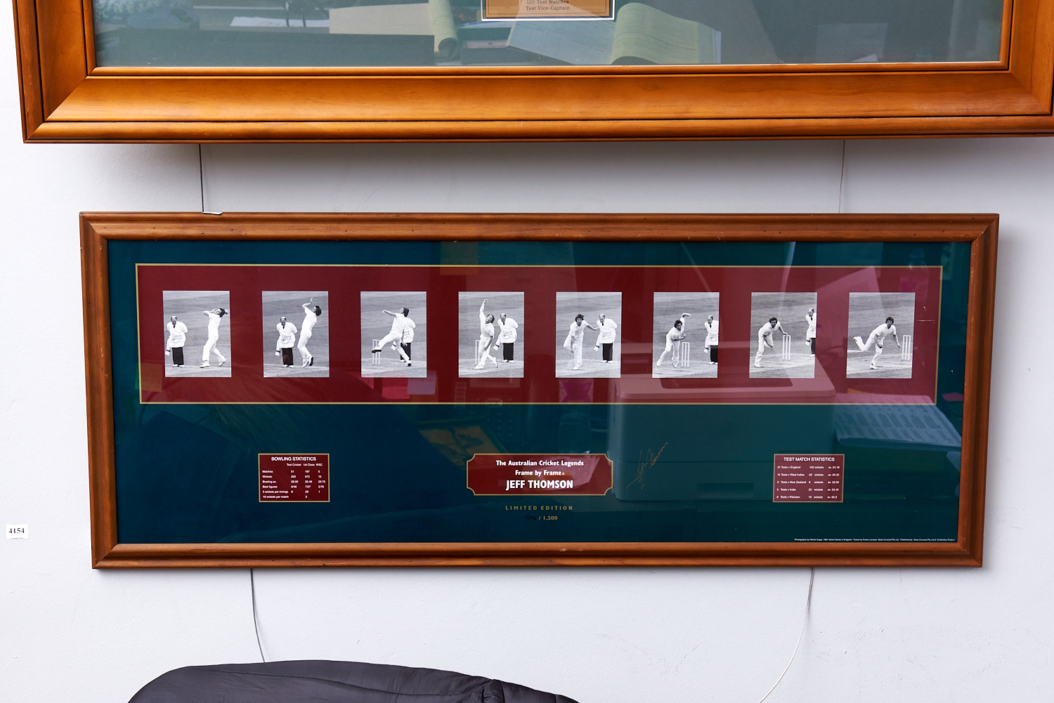 THE AUSTRALIAN CRICKET LEGENDS FRAME BY FRAME JEFF THOMSON LIMITED EDITION 1016/1500 H.41CM X W.104CM, LEONARD JOEL LOCAL DELIVERY SIZE: MEDIUM