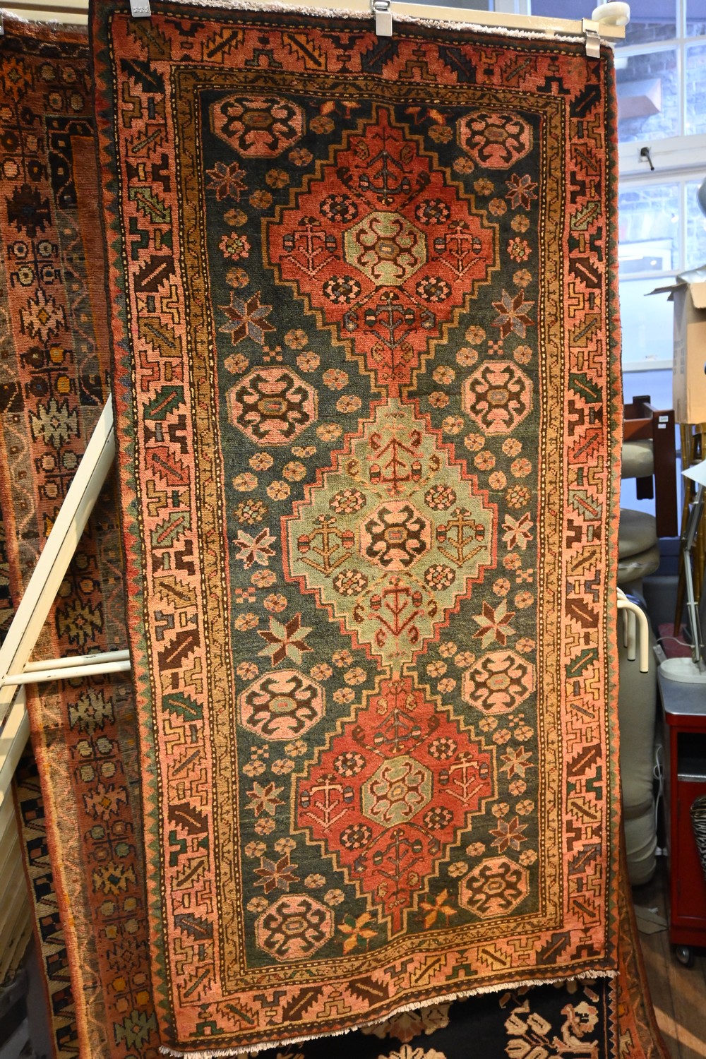 A BEAUTIFUL ONE OF A KIND PERSIAN TRIBAL TAROOM RUG. HAND KNOTTED WITH 100% NATURAL DYES AND 100% WOOLLEN PILE IN THE MOST COLOURFUL SELECTION OF COLOURS, A VERY DECORATIVE PIECE SUITABLE FOR MODERN AS WELL AS TRADITIONAL SETTINGS. EX-GALLERY RUG. IN EXCELLENT CONDITION. SIZE: 208 X 108 CM ORIGIN: PERSIA – RRP: $1,800 DOCUMENTATION OF AUTHENTICITY INCLUDED