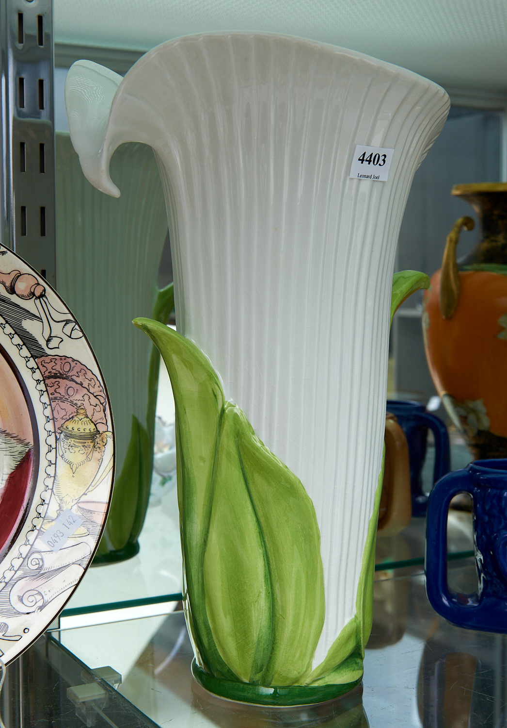A CERAMIC VASE IN A FORM OF A LILY H.35CM, LEONARD JOEL LOCAL DELIVERY SIZE: MEDIUM