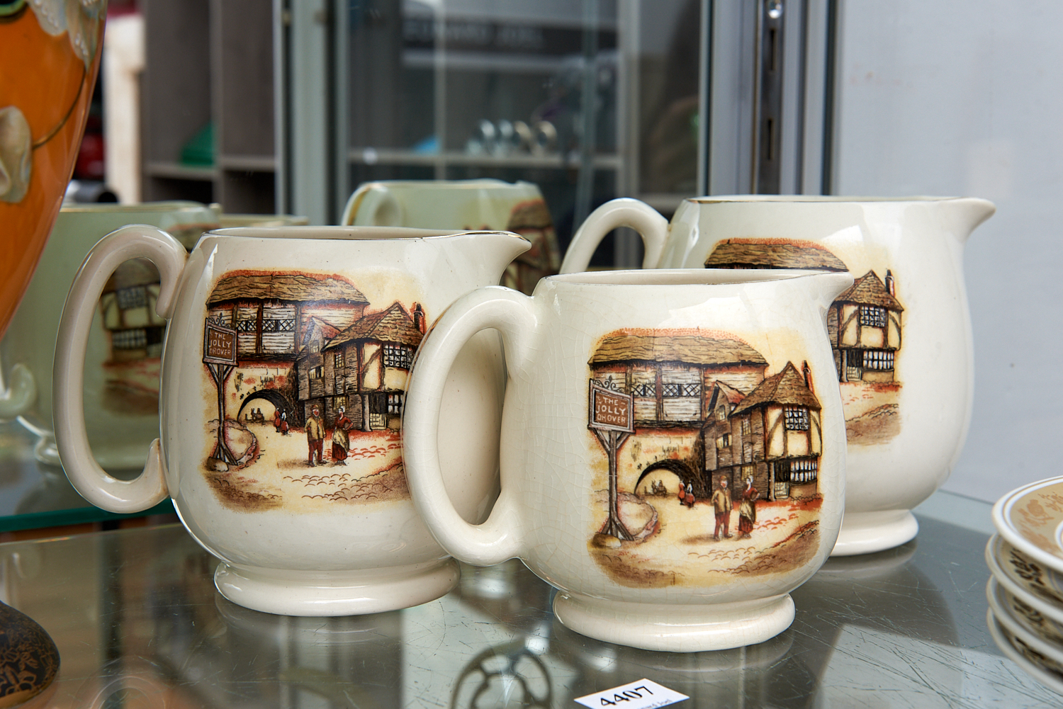 A GRADUATED SET OF THREE ENGLISH LANCASTER JUGS H.12.5CM, LEONARD JOEL LOCAL DELIVERY SIZE: MEDIUM