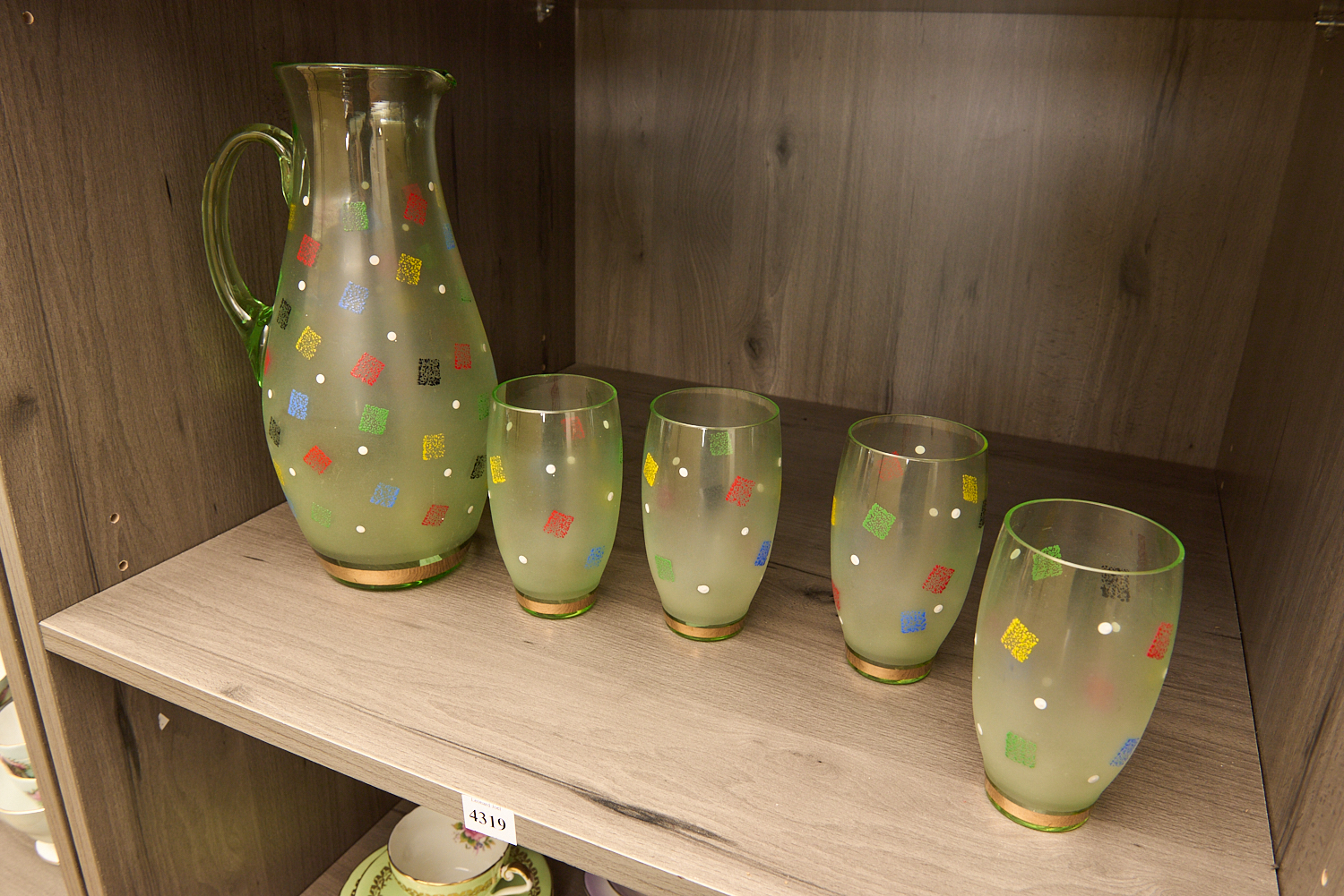 A MID CENTURY JUG AND FOUR MATCHED TUMBLERS, LEONARD JOEL LOCAL DELIVERY SIZE: MEDIUM