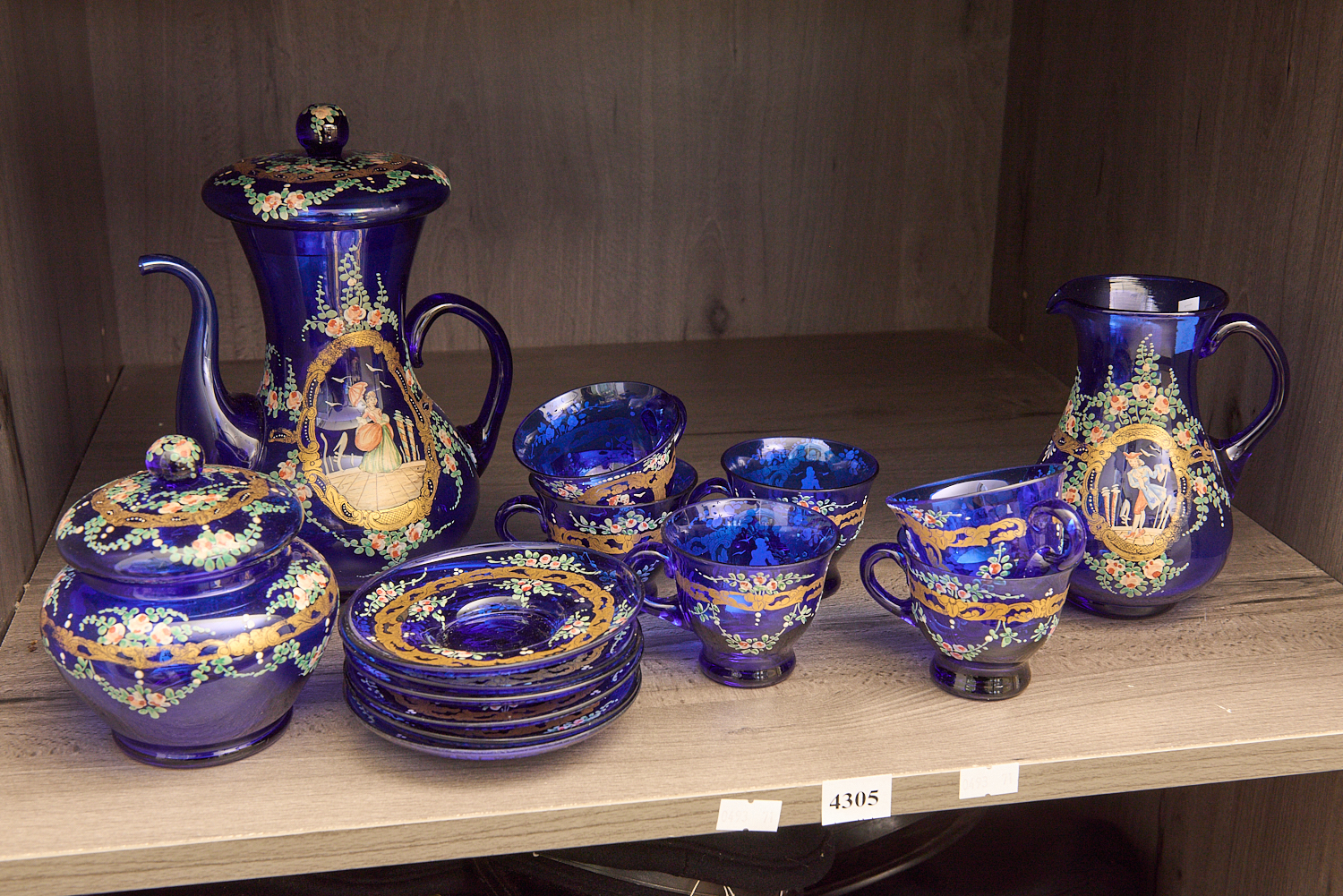 AN ITALIAN BLUE GLASS TEASET, LEONARD JOEL LOCAL DELIVERY SIZE: MEDIUM