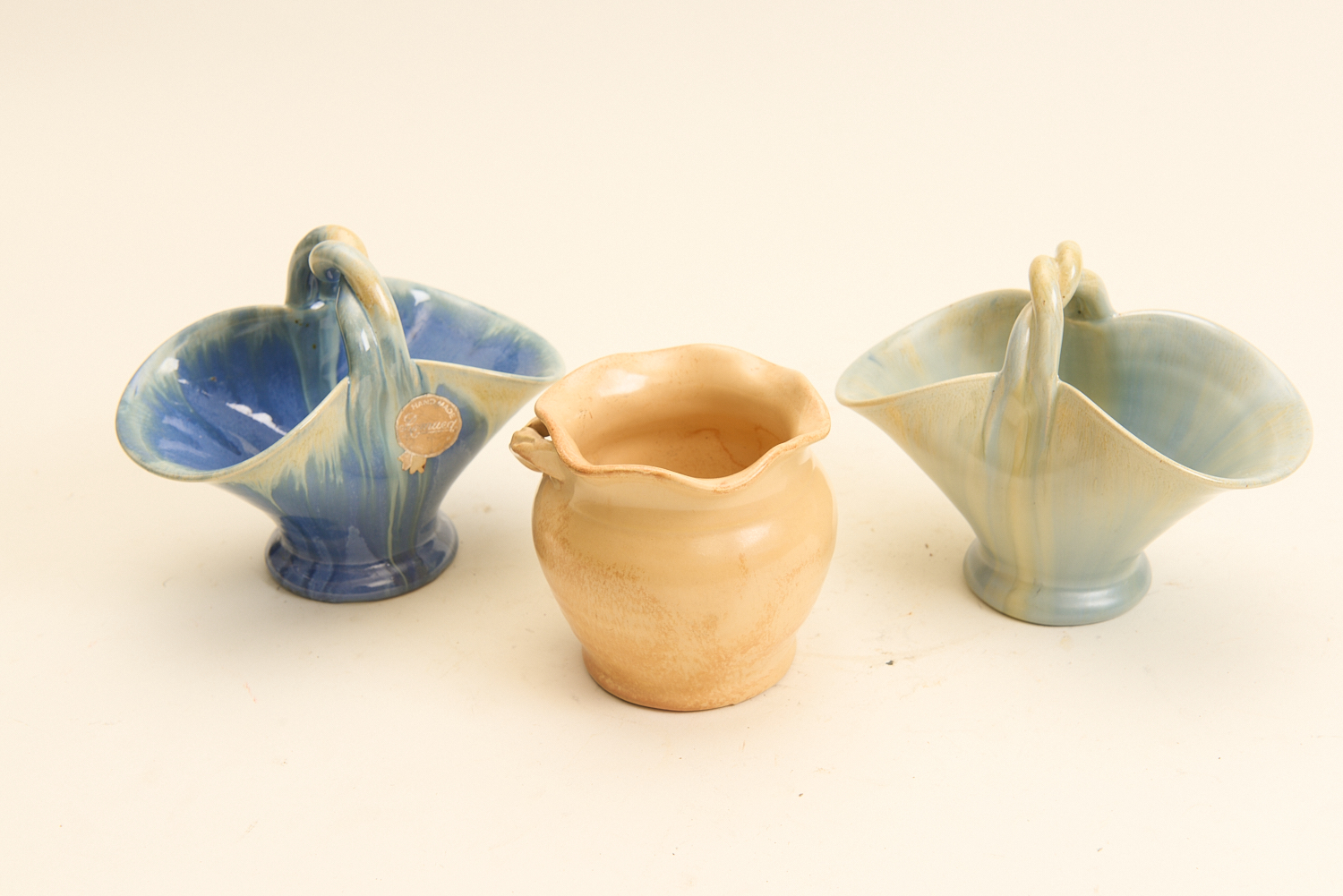 THREE PIECES OF AUSTRALIAN REMUED POTTERY (A/F) H.12CM, LEONARD JOEL LOCAL DELIVERY SIZE: SMALL