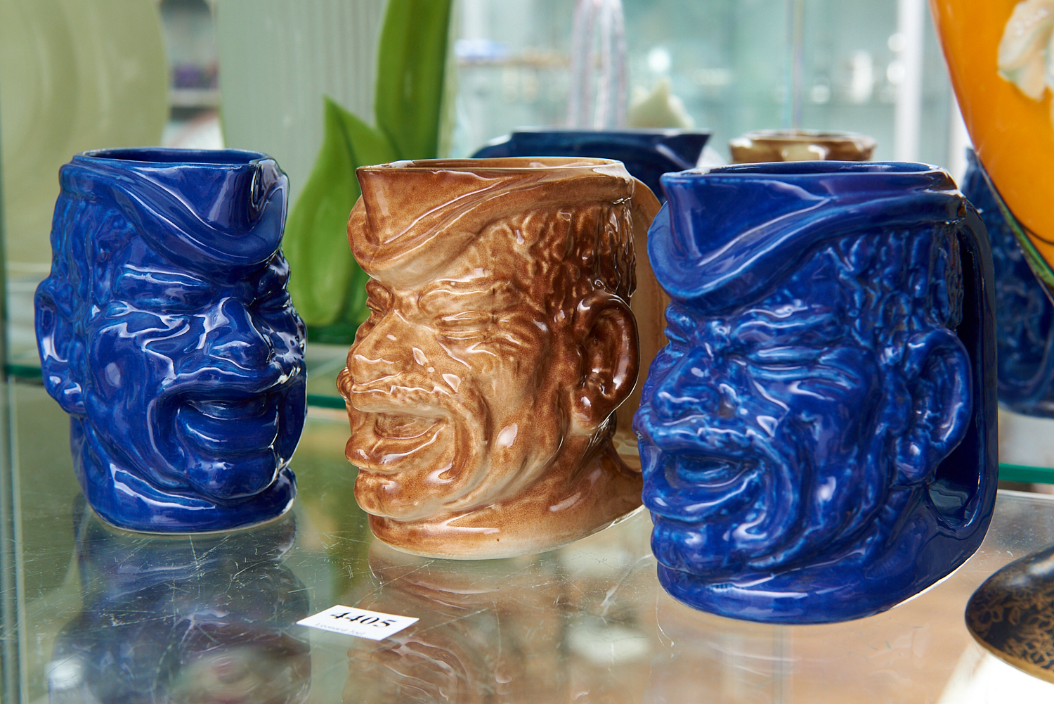 THREE POTTERY FACE JUGS H.11CM, LEONARD JOEL LOCAL DELIVERY SIZE: SMALL