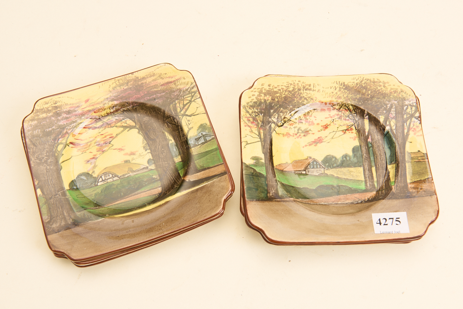 SIX ROYAL DOULTON SQUARE BREAD AND BUTTER PLATES WITH LANDSCAPE PATTERN W.15CM, LEONARD JOEL LOCAL DELIVERY SIZE: SMALL