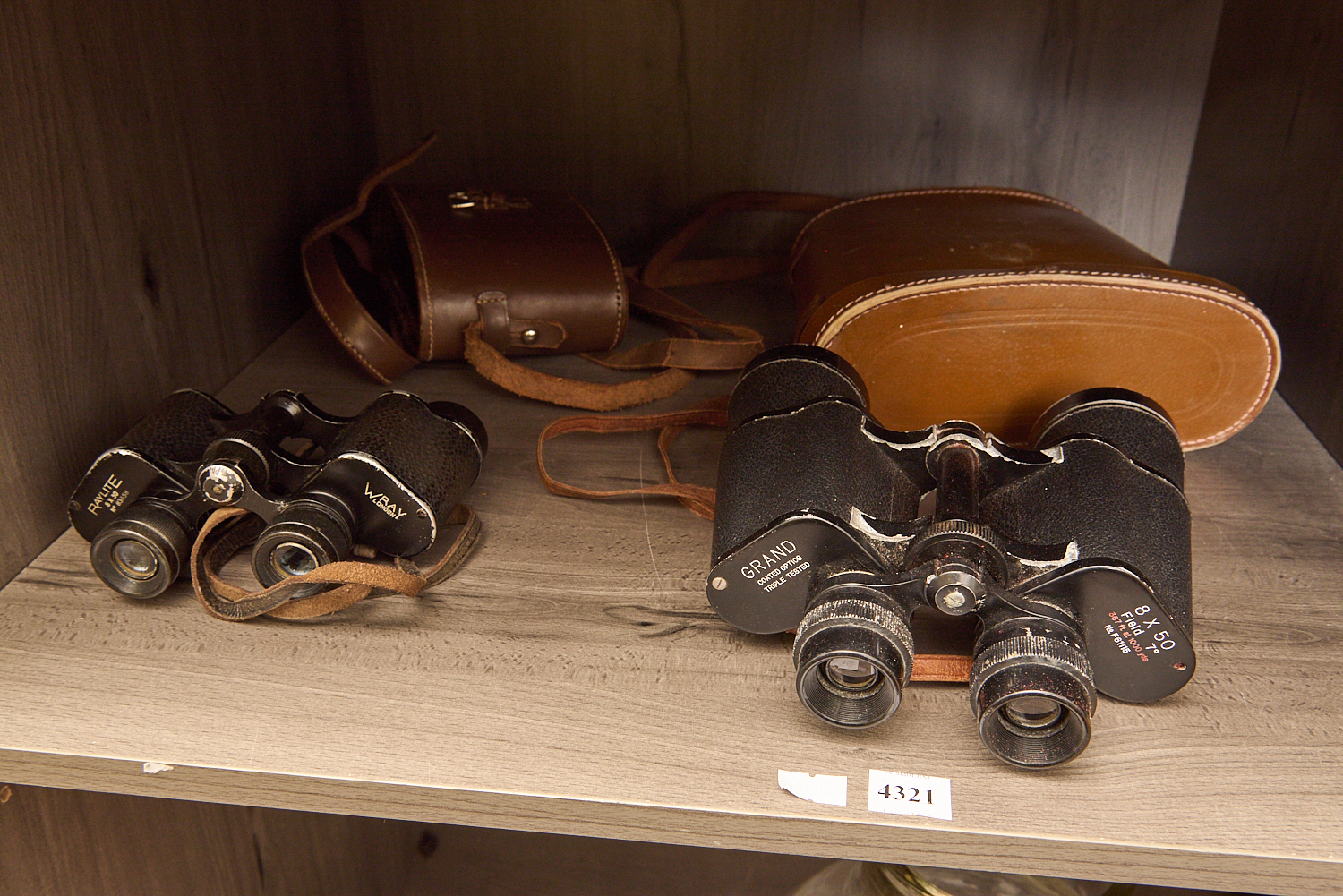 TWO PAIRS OF CASED LEATHER BINOCULARS, LEONARD JOEL LOCAL DELIVERY SIZE: SMALL