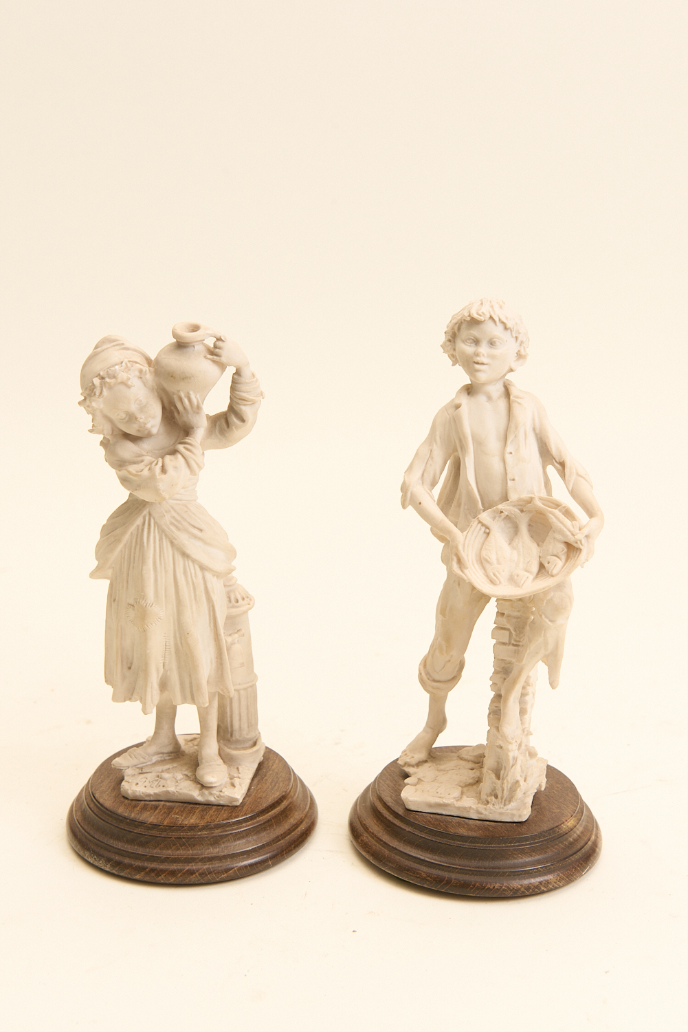 TWO ITALIAN GUISEPPI ARMANI FIGURES INCLUDING BOY WITH BASKET AND GIRL WITH WATER VESSEL H.20CM, LEONARD JOEL LOCAL DELIVERY SIZE: SMALL