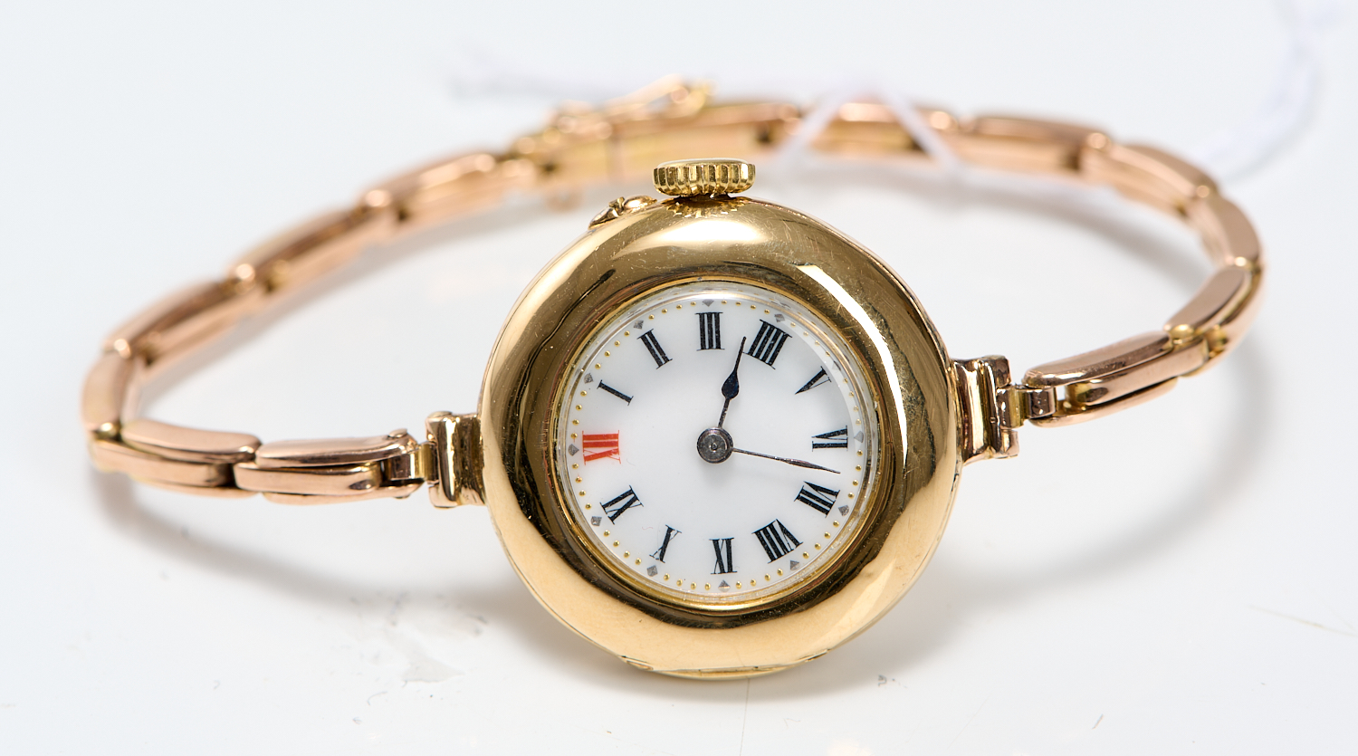 A VINTAGE LADY'S WRISTWATCH, WITH CASE IN 18CT GOLD, AND BRACELET IN 9CT ROSE GOLD, 22.3GMS