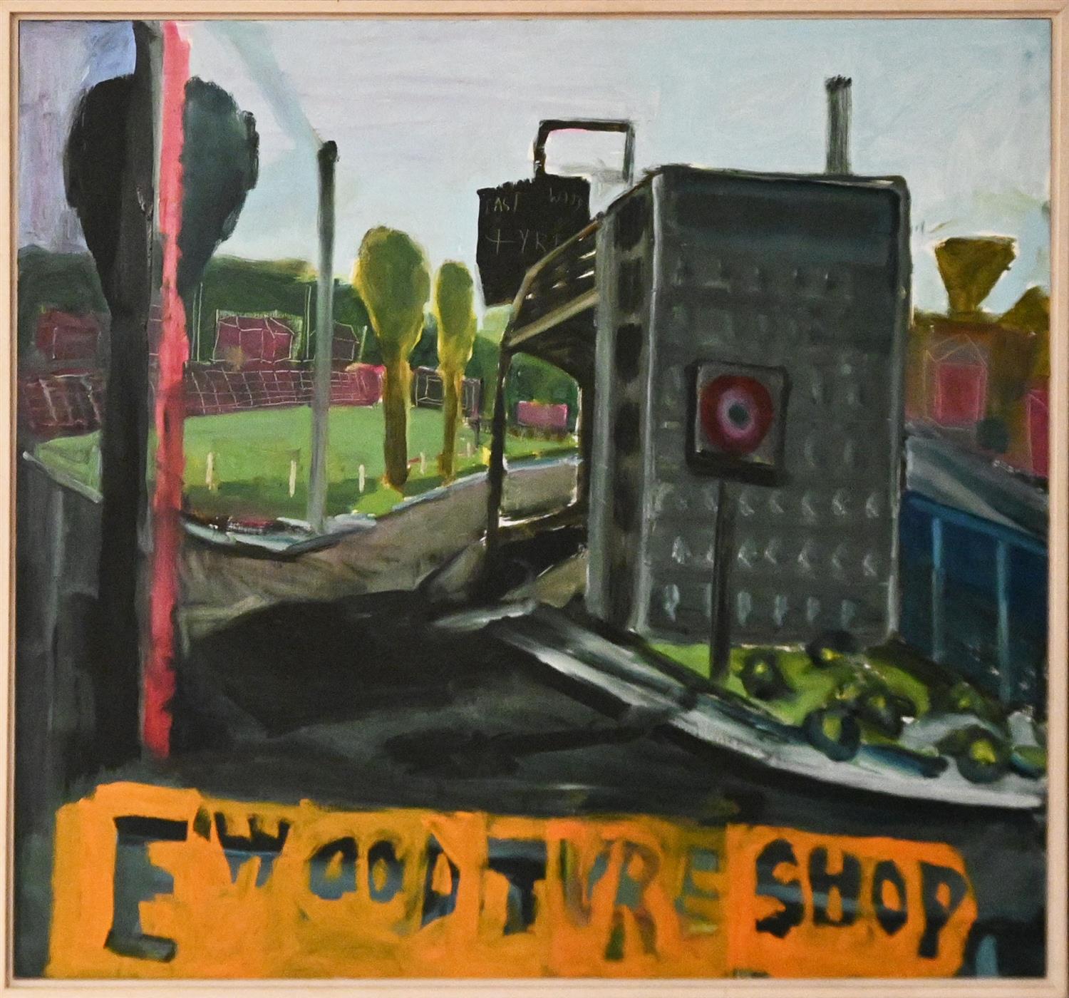 signed, titled and dated verso: Joe Frost/ "Eastwood Tyre Shop" 2003-4