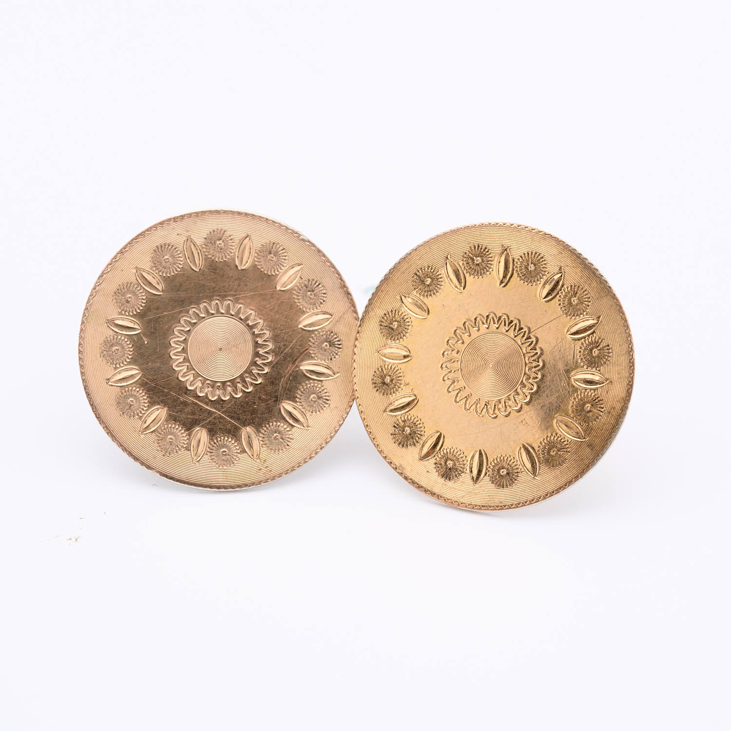 A PAIR OF ENGRAVED CUFFLINKS IN SILVER GILT, DIAMETER APPROXIMATELY 20MM