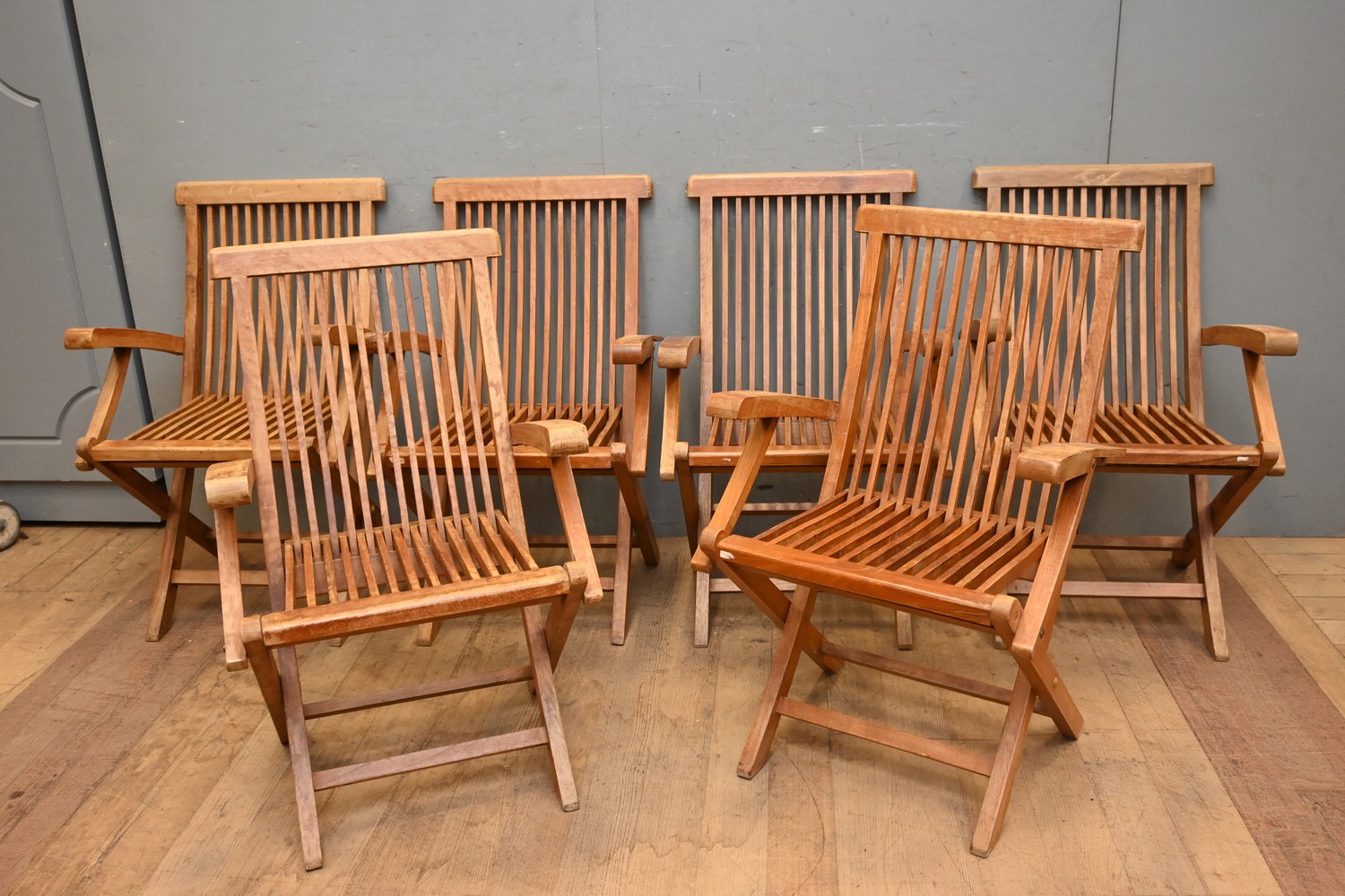A SET OF SIX TEAK DECK CHAIRS (A/F) (90H X 56W X 62D CM) (LEONARD JOEL DELIVERY SIZE: LARGE)