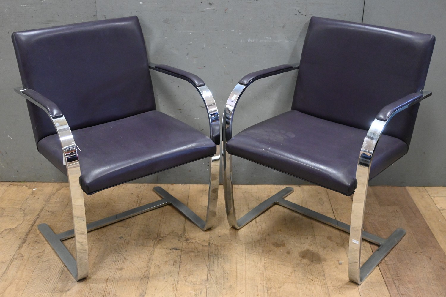 A PAIR OF RETRO CHROME AND LEATHER CANTELEVER CHAIRS (A/F) (80H X 48W X 55D CM) (LEONARD JOEL DELIVERY SIZE: LARGE)