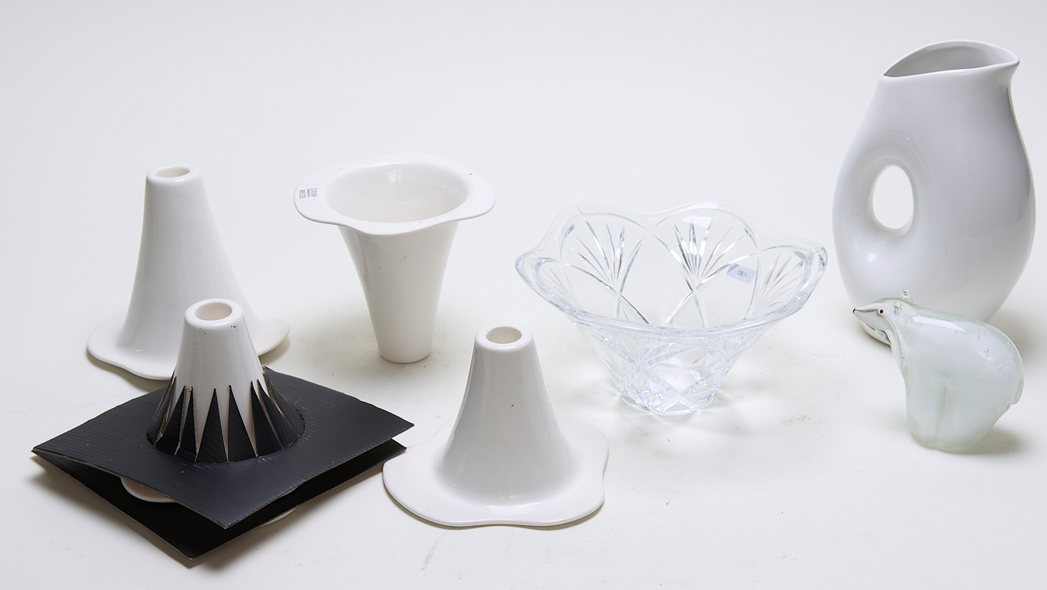 A SHELF LOT OF VASES AND OTHER HOMEWARES INCLUDING WATERFORD BOWL, LEONARD JOEL LOCAL DELIVERY SIZE: MEDIUM