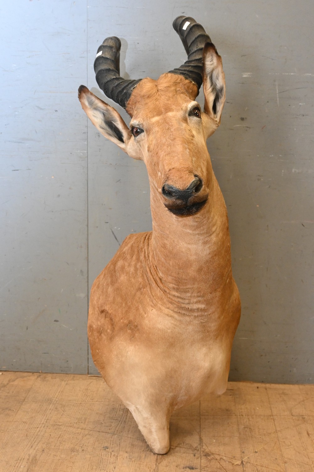 AN AFRICAN TAXIDERMY HEAD AND SHOULDER MOUNT (111H CM) (PLEASE NOTE THIS HEAVY ITEM MUST BE REMOVED BY CARRIERS AT THE CUSTOMER'S EXPENSE. LEONARD JOEL STAFF CANNOT ASSIST CARRYING THIS ITEM) (X-LARGE ITEM)