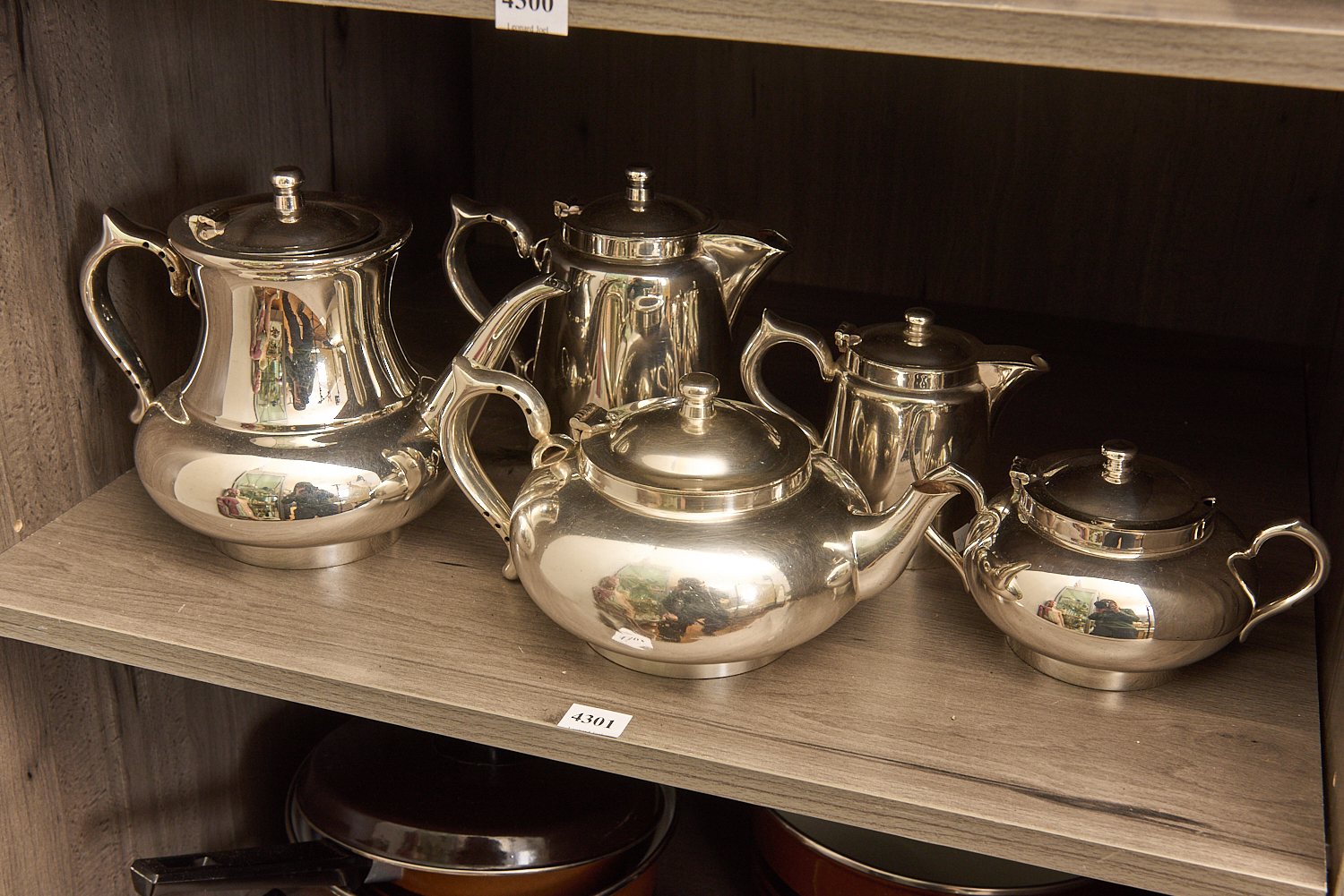 A FIVE PIECE ROBUR CHALLENGE SILVER PLATE TEA AND COFFEE SERVICE, LEONARD JOEL LOCAL DELIVERY SIZE: MEDIUM