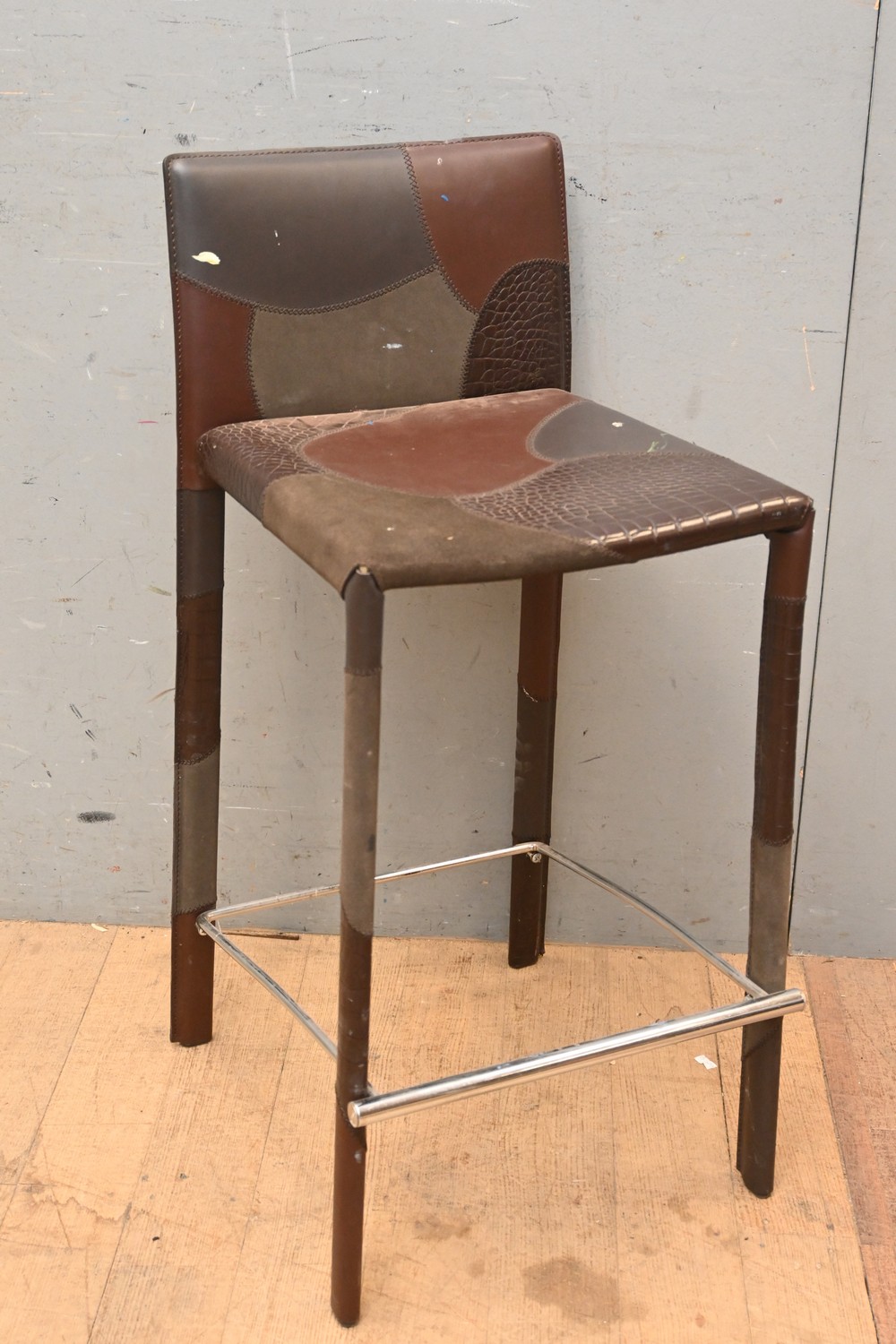 A CONTEMPORARY METAL AND LEATHER EFFECT BAR STOOL (A/F) (87H X 38W X 46D CM) (LEONARD JOEL DELIVERY SIZE: LARGE)