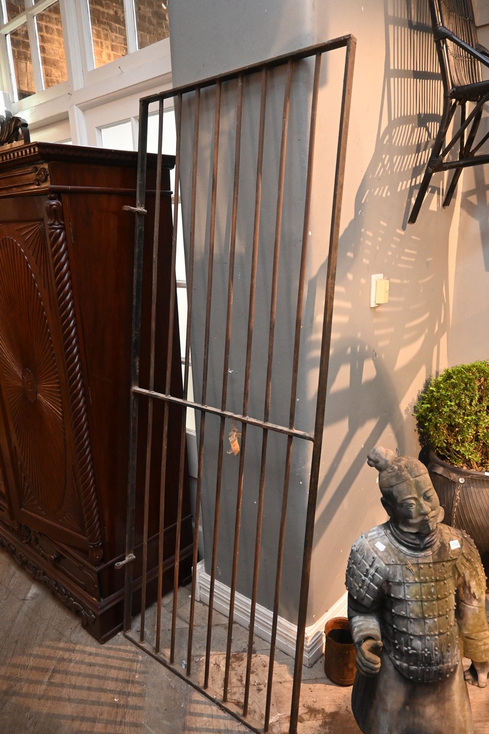 A SOLID WROUGHT IRON GATE (203 X 80W CM) (PLEASE NOTE THIS HEAVY ITEM MUST BE REMOVED BY CARRIERS AT THE CUSTOMER'S EXPENSE. LEONARD JOEL STAFF CANNOT ASSIST CARRYING THIS ITEM) (X-LARGE ITEM)