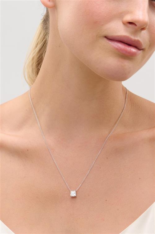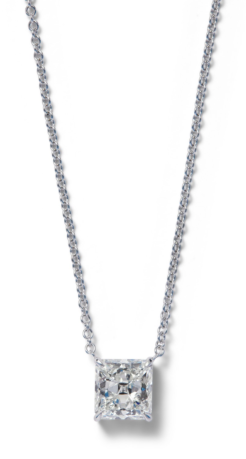 The claw-set cut-cornered square modified brilliant-cut diamond weighing 1.71 carats, is completed by a fine 18ct white gold cable link chain, circumference 465mm.