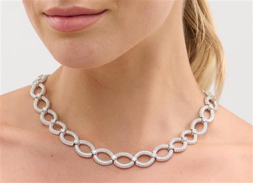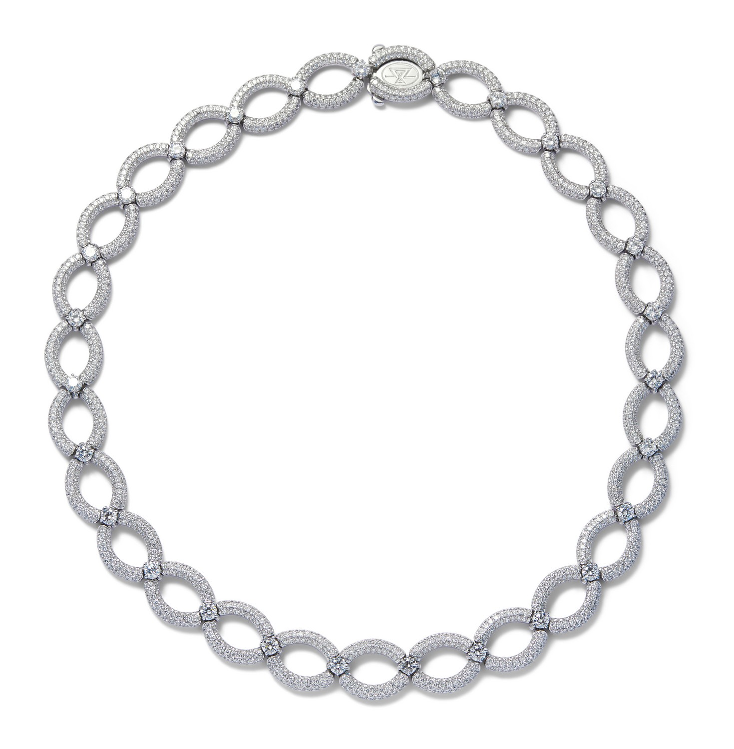 Composed of a line of elliptical links embellished with brilliant-cut diamonds between claw-set diamond connectors, mounted in 18ct white gold, the diamonds together weighing approximately 19.29 carats, inner circumference 380mm, maker's mark for Gubelin, numbered 42A 1103 2, signed Gubelin.