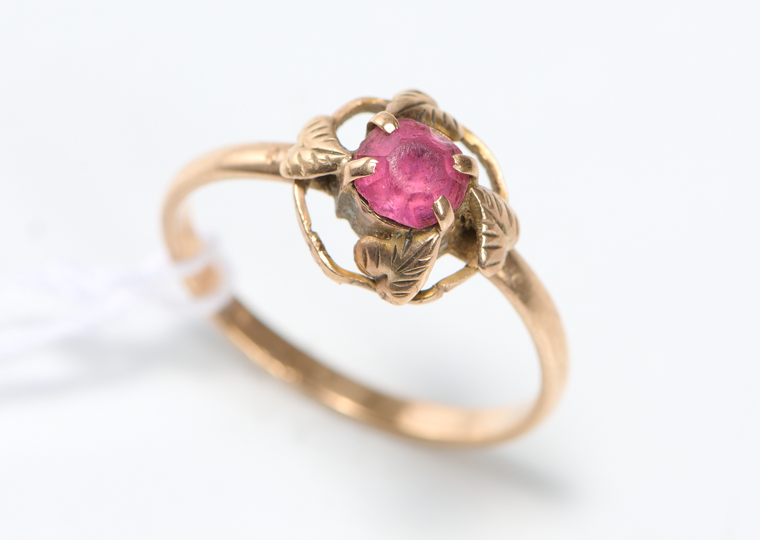 A PASTE SET RING IN 9CT GOLD, RING SIZE N, 1.9GMS