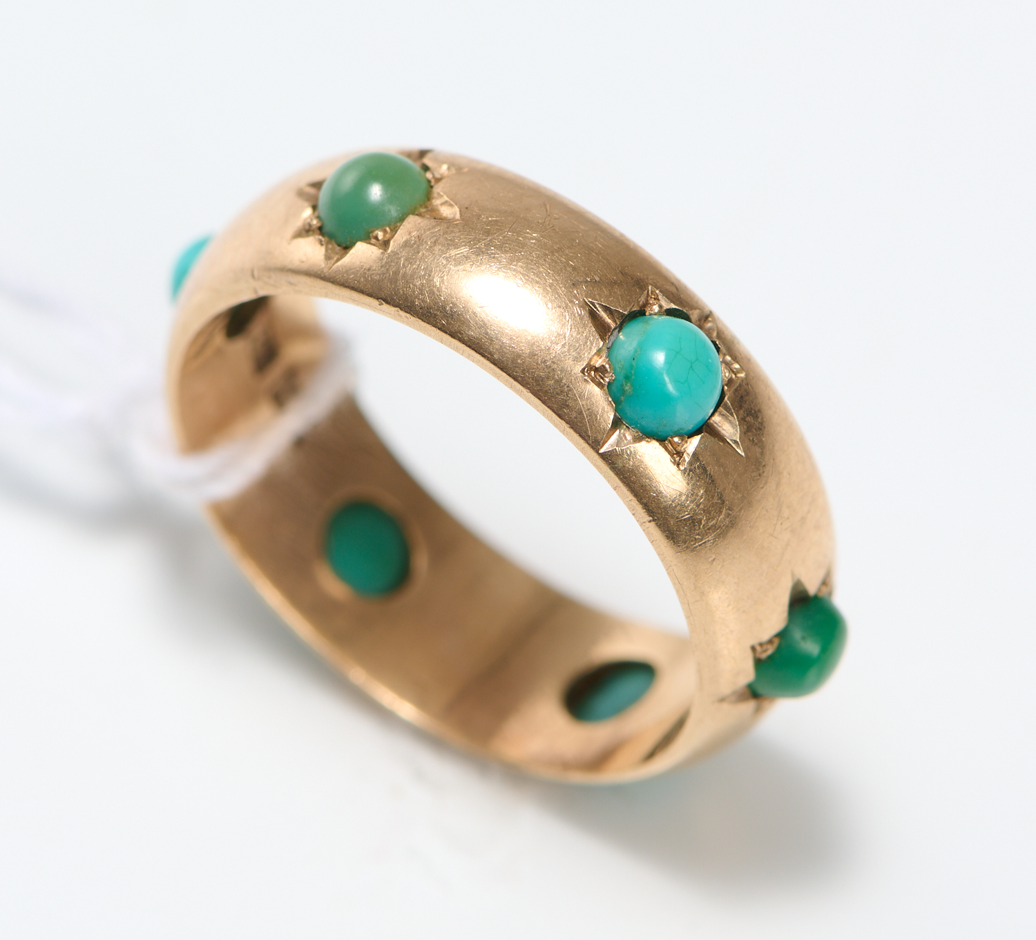 A TURQUOISE SET RING IN 9CT GOLD, RING SIZE L, 3.8GMS