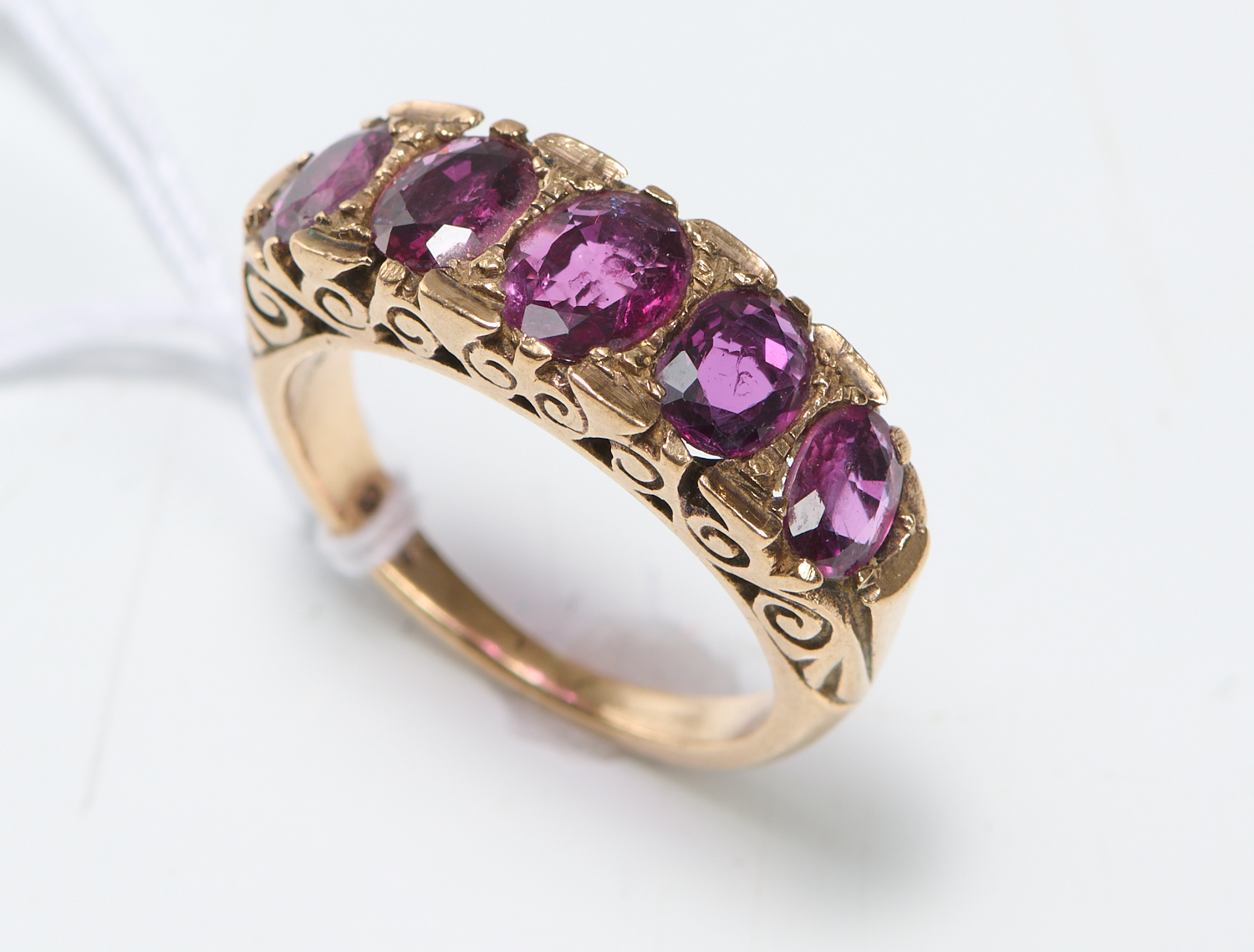 A GARNET SET RING IN 9CT GOLD, SIZE L, 5.5GMS
