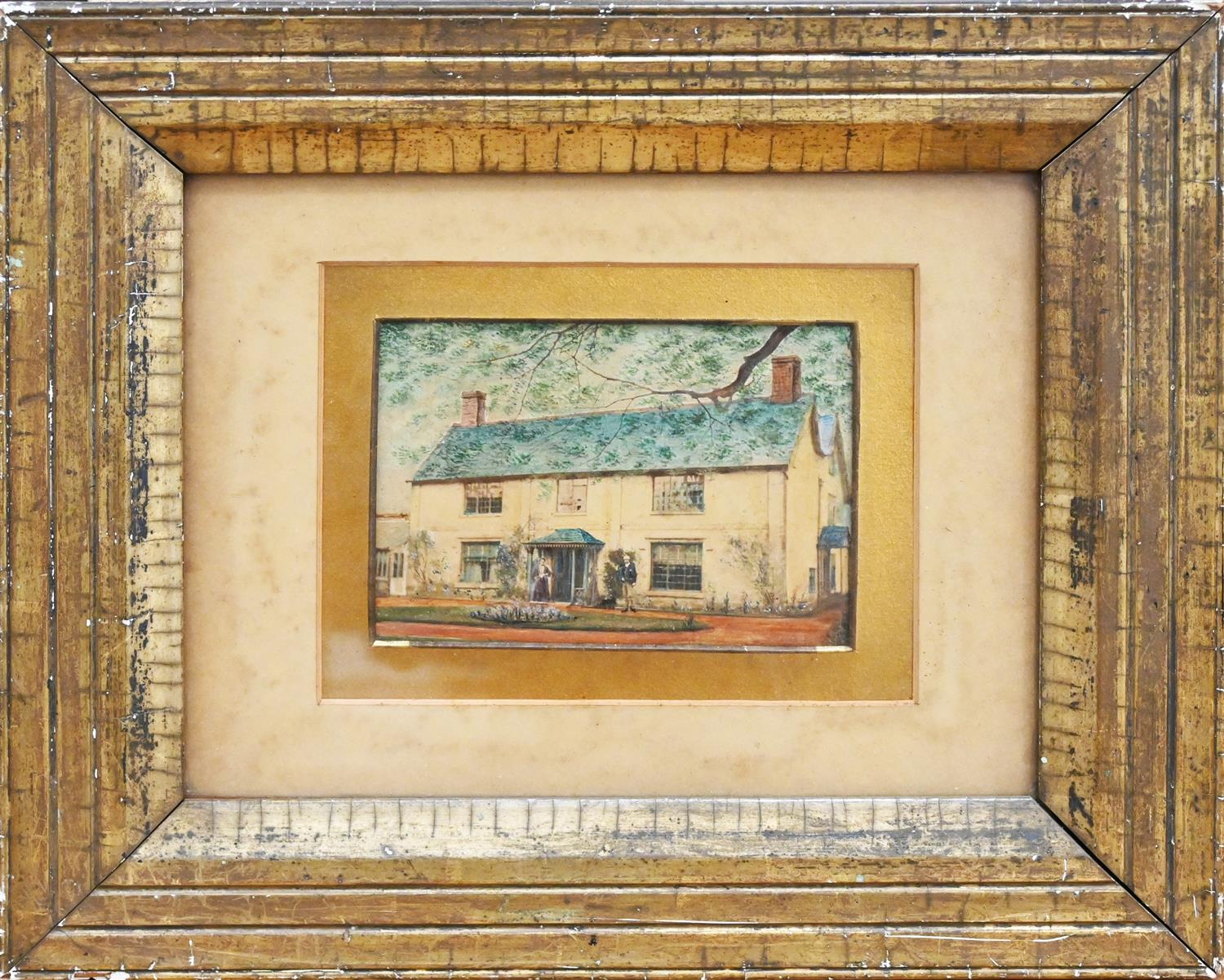 SIGNS OF SURFACE DIRT AND DUST CONSISTENT WITH AGE. LOSSES AND WEAR ACROSS FRAME. SIGNS OF FOXING AND DISCOLOURATION TO MOUNT.