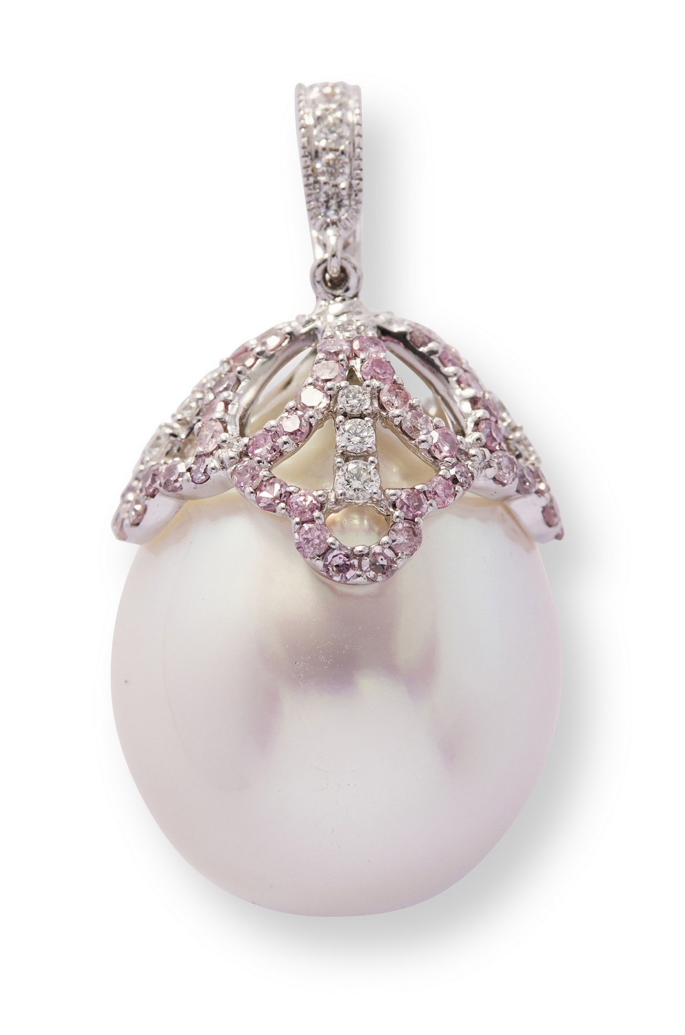 AUTORE AUSTRALIAN SOUTH SEA PEARL, FANCY PINK DIAMOND AND DIAMOND PENDANT