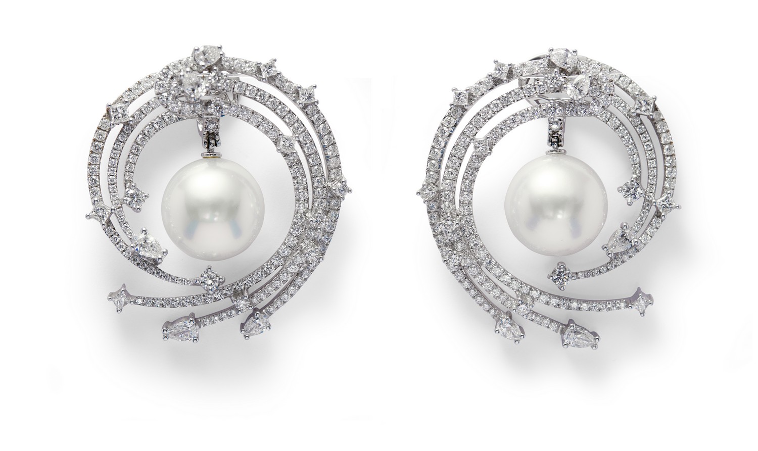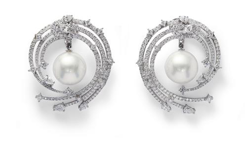 AUTORE PAIR OF AUSTRALIAN SOUTH SEA PEARL AND DIAMOND EARRINGS