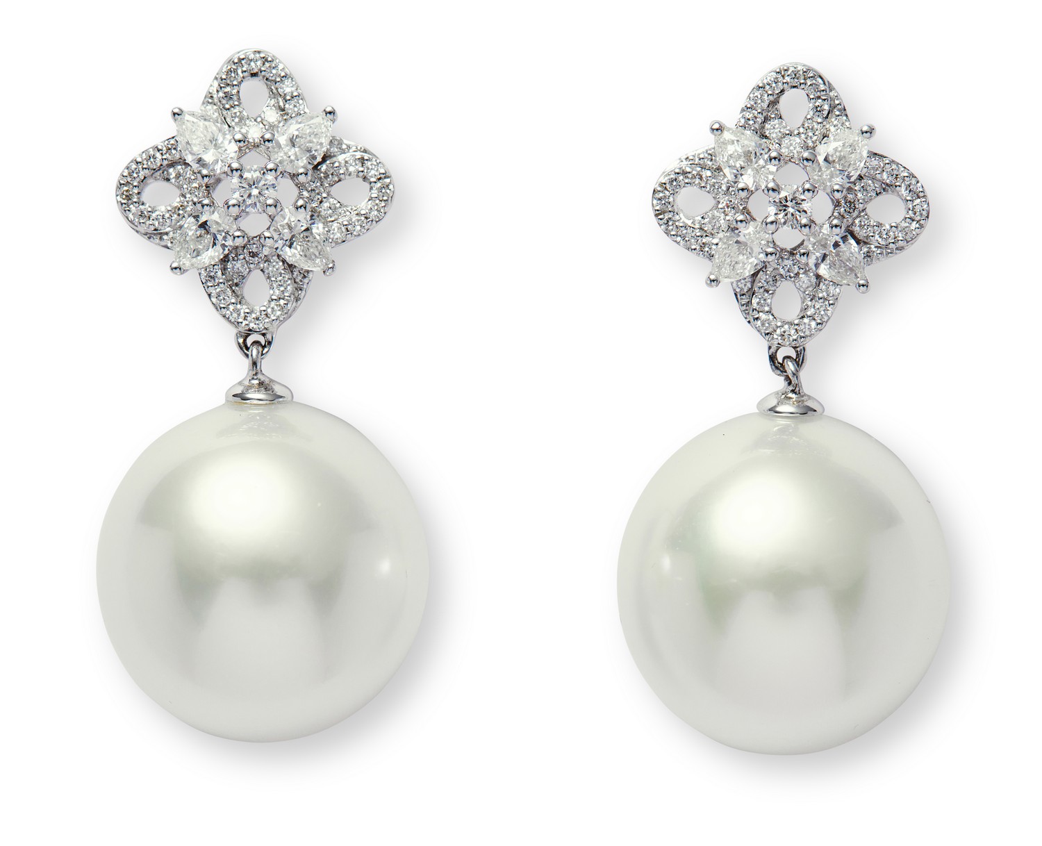 AUTORE PAIR OF AUSTRALIAN SOUTH SEA PEARL AND DIAMOND EARRINGS