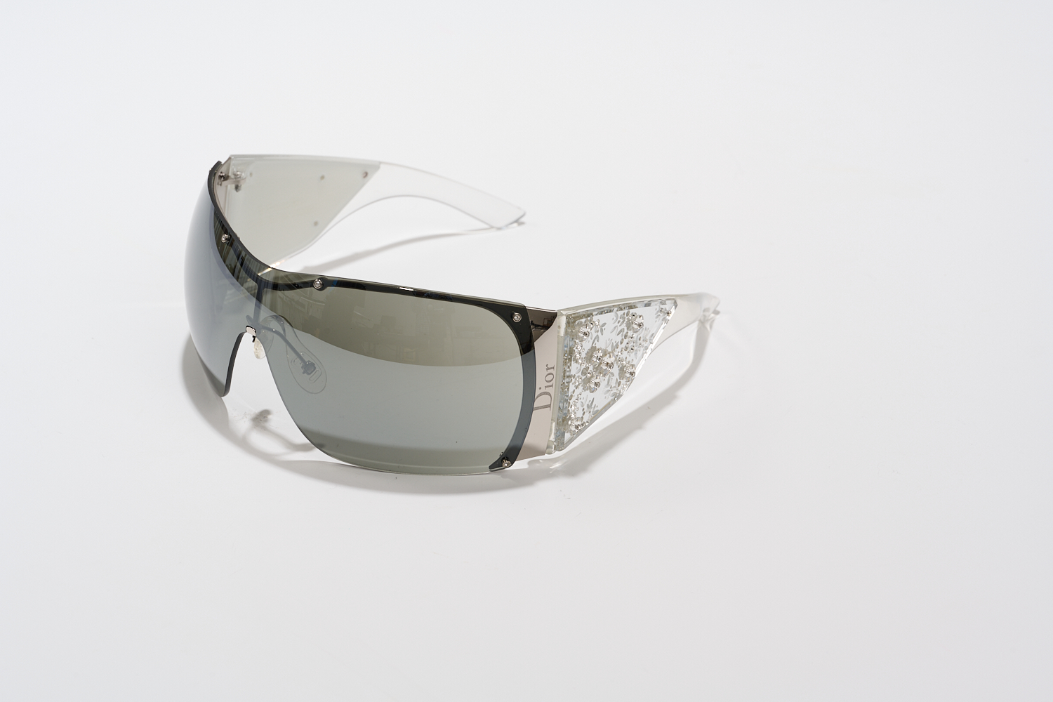 A PAIR OF GRANDSAS SUNGLASSES BY DIOR - The shield frames styled in clear composite with diamante studded mirror accents, styled in size 99.