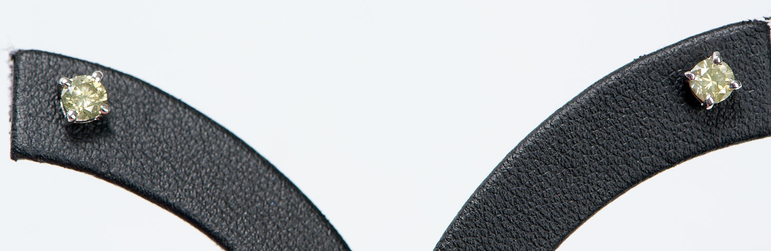 A PAIR OF YELLOW DIAMOND EARRINGS IN 18CT WHITE GOLD, THE DIAMOND TOTALLING 0.64CTS, EACH APPROXIMATELY 5.20MM, TO POST AND BUTTERFLY FITTINGS,